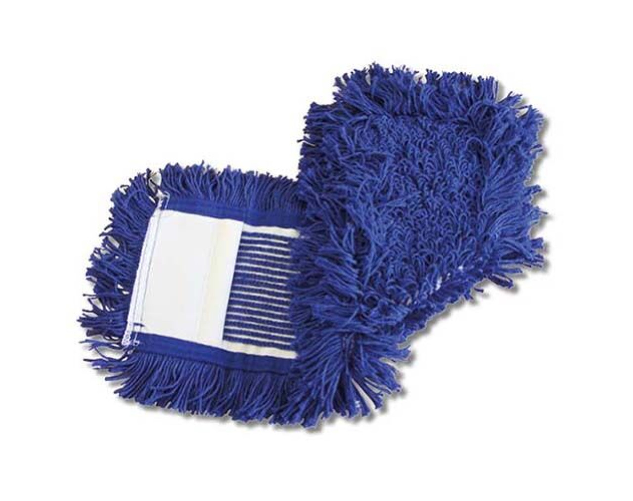 Schlingen-Fransen-Bezug aus hochwertiger Garnfaser in blau Innen Schlingen getuftet, außen Fransen genäht. Hohe Wasseraufnahme durch eingenähtes Viskosematerial. Extrem hohe Schmutzlösekraft. Passend auf alle gängigen Klapphalter. Produkteigenschaften Material: 40 % Baumwolle, 40 % Polyester, 20 % Viskose Größe: 40 cm / 50 cm Einsatzbereich: Universelle Reinigung, Unterhaltsreinigung Anwendung: Feuchtwischen Waschbarkeit: bis 95 °C Trocknergeeignet: ja VE: 50