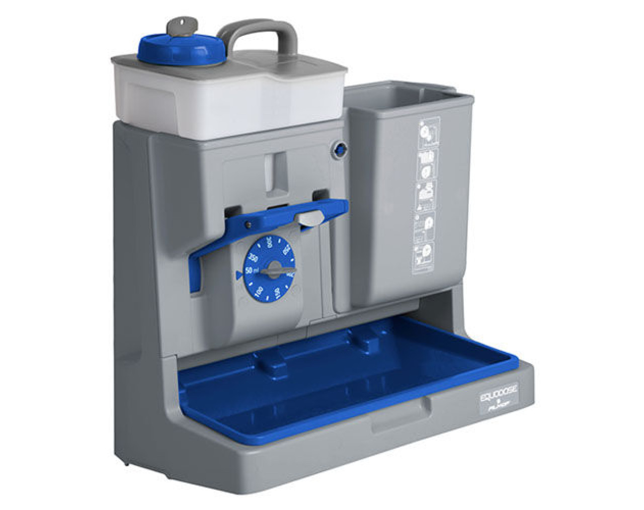 Filmap Equodose Dosiervorrichtung für Alpha Reinigungswagen Dieses System ermöglicht die Tränkung, der zur Reinigung notwendigen Bezüge, direkt vor Ort. Vorteile mit 6 L Tank mechanische Dosieranlage um Mopps vor Ort zu tränken kompatibel mit Alpha Reinigungswagen Reduzierung des Risikos von Kreuzkontaminationen, da jeder Raum mit einem anderen, stets sauberen, Mopp gereinigt werden kann. Tränken Sie nur die benötigten Moppnzahl oder einen einzelnen Mopp! Hinweis: Eine regelmäßige und sehr sorgfältige Tiefenreinigung des Tanks mit chlorhaltigen Desinfektionsmitteln wird empfohlen. Nur für System 40 cm geeignet. Produkteigenschaften Maße: 28 x 55 x 55 cm Gewicht: 5,047 kg (netto) Material: Polypropylen VE: 1