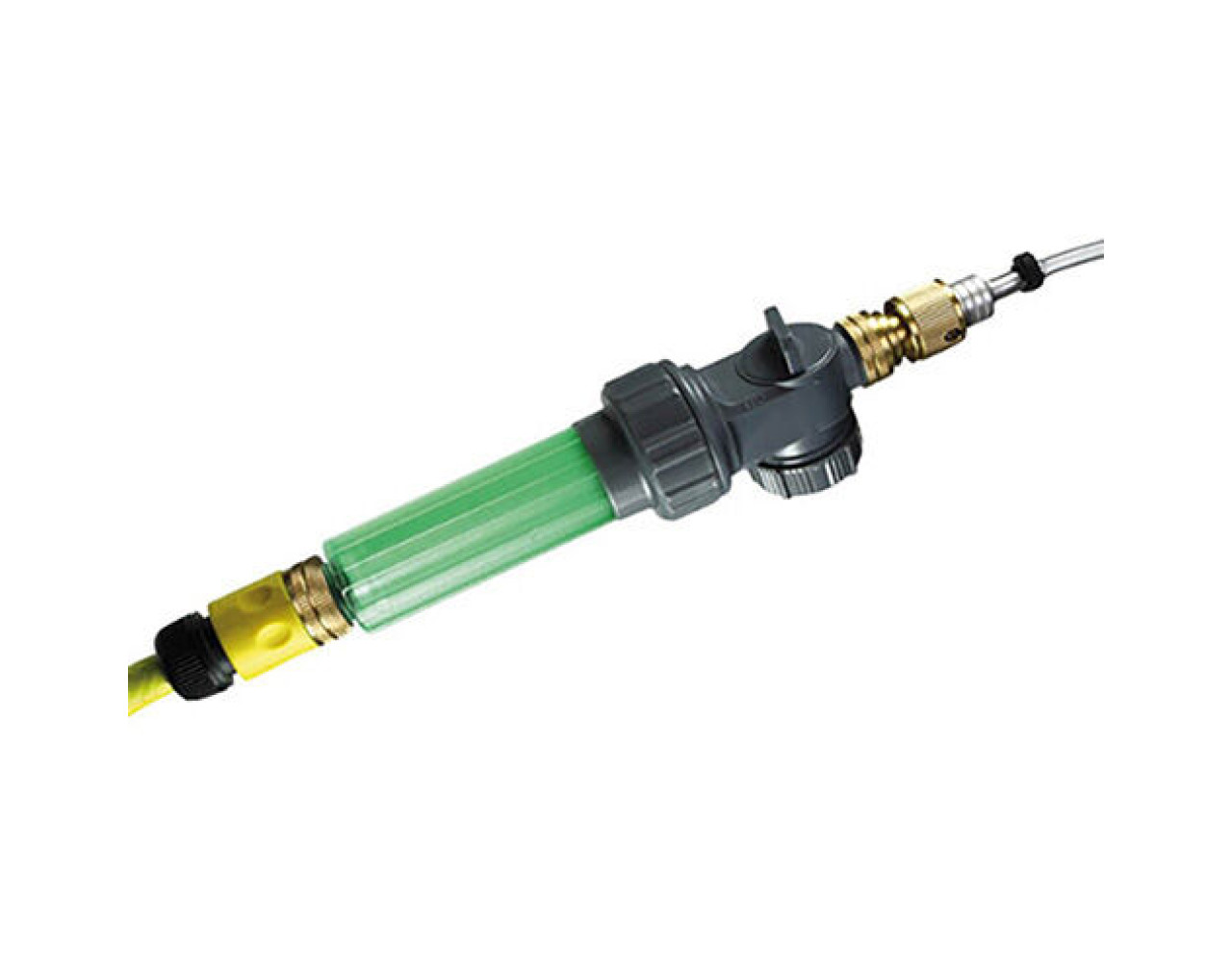 Unger HiFlo Seifendosierer, zum Beimischen von Seife Nutzen Sie den HiFlo Seifendosierer, wenn bei stark verschmutzen Fenstern, trotz Reinstwasser, Seife eingesetzt werden muss, Befüllen Sie einfach den grünen Behälter mit Ihrem Reinigungsmittel. Das Regulierventil des Seifendosierers sorgt für die fachgerechte Dosierung. Vorteile Beimischung von Seife zum Reinwasser einfacher Anschluss an Standard-Gartenschlauch leichtes Befüllen Jeikner Profi-Tipp: Kunden haben uns von guter Erfahrung mit der Beimischung von Klarspüler statt Seife berichtet. Der HiFlo Seifendosierer ist kombinierbar mit: HydroPower Ultra Filter S HydroPower Ultra Filter L HydroPower Ultra Filter LC HydroPower Ultra - Einsteiger-Set Alu 6 m HydroPower Ultra - Fortgeschrittenen-Set Glasfaser 7,5 m (JDINK2) HydroPower Ultra - Profi-Set Karbon 10 m (JDINK3) HydroPower RO L Filter nLite Winkelbürste nLite Solar Winkelbürste nLite Connect Ultra HiMod Karbon, 3,41 m nLite Connect Ultra HiMod Karbon, 6,63 m nLite Connect HiMod Karbon, 6,63 m nLite Connect HiMod Karbon, 3,41 m nLite Connect Alu nLite Connect Alu Teleskopstange, 3,00 m Produkteigenschaften VE: 1