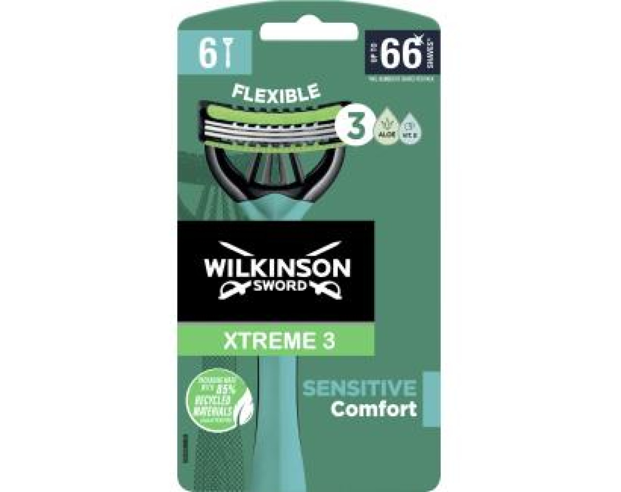 Rasierer mit 3 flexiblen Klingen für durchschnittlich bis zu 11 Rasuren. Sensibler Komfort für jeden gewünschten Winkel. Die Klingen bestehen zu 70% aus recyceltem Stahl.
