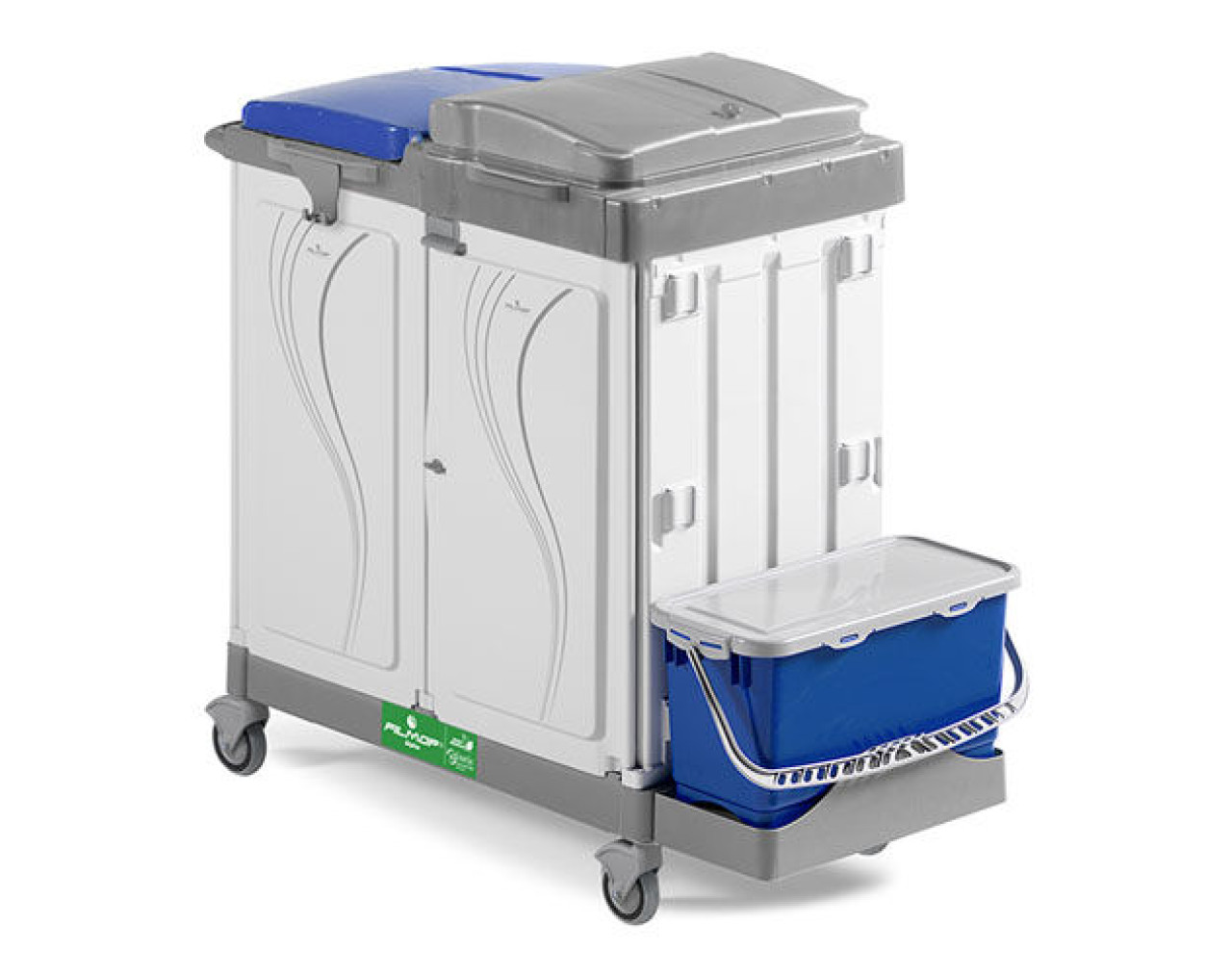 Filmop Alpha 3806701 Kunststoff-Reinigungswagen Der Alpha 3806701 Reinigungswagen wird zum Nasswischen und Desinfizieren in Krankenhäusern, Altenheimen, Kliniken und Arztpraxen zusammen mit dem Top-Down-System und "vorimprägnierten" Mikrofasermopps eingesetzt. Vorteile leicht, stoßfest, strapazierfähig und kältebeständig ergonomisch, leicht zu montiere und zu reinigen die vertikalen Rahmen garantieren höchste Hygiene, da sie das Abfallsammelfach vom Rest des Wagens abtrennen 4 Liter Eimer in verschiedenen Farben, um die verschiedenen chemischen Lösungen und Werkzeuge zu trennen Lieferumfang: 1 x 4 L Eimer mit Griff in blau 1 x 4 L Eimer mit Griff in rot 1 x 4 L Eimer mit Griff in gelb 1 x 4 L Eimer mit Griff in grün 1 x Deckel für 4 x 4 L Eimer Abschließbar 1 x 20 L Eimer mit Griff und Deckel in blau Räder 125 mm Durchmesser 1 x graue Schublade ohne Schlüssel 1 x graue Schublade 22 L mit Schloss 1 x Trennung für Müllsack/Wäschesackhalter 150 Liter 1 x Müllsack/Wäschesackhalter 150 Liter Produkteigenschaften Maße: 120 x 58 x 110 cm Gewicht: 34,75 kg Material: Kunststoff Latexfrei: ja VE: 1