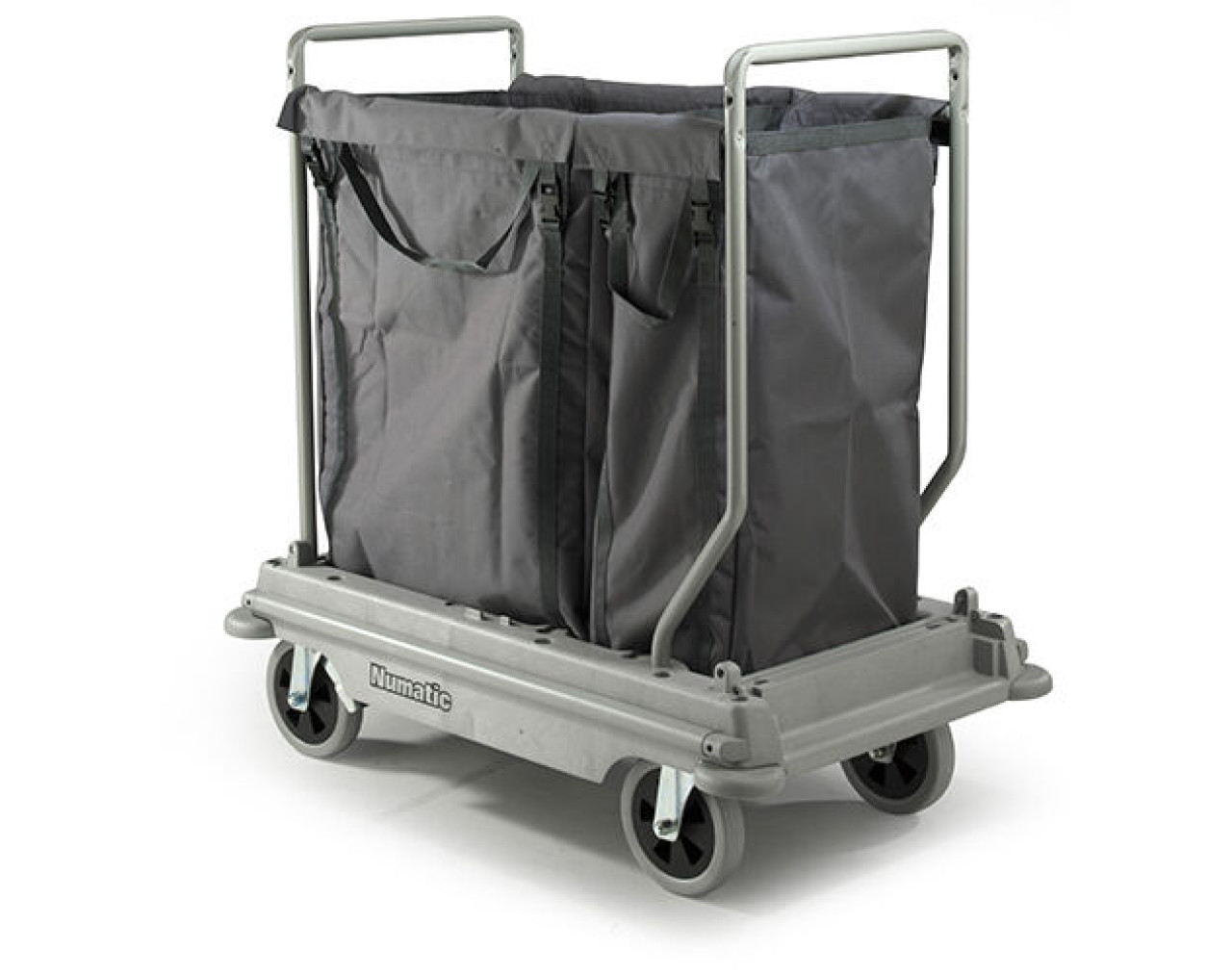 Numatic NB3002 – optimaler Wäschewagen mit 300 Liter Fassungsvermögen Der Numatic Wäschesammel- und Transportwagen NB3002 ermöglicht durch einen 100 und einen 200 Liter Wäschesack die getrennte Sammlung von Hotelwäsche. Das stabile Structofoam-Grundgestell und die 200 mm großen Laufräder gewährleisten auch bei hohem Gewicht eine leichte und stabile Beweglichkeit des Wagens. Die pulverbeschichteten Metallrohre sichern einen festen Halt der Wäschesäcke. Diese lassen sich durch ein Click-System einfach und schnell vom Wagen entfernen. Vorteile mit einem 200 und einem 100-Liter Waschesack extra große 200 mm Laufrollen die Wäschesäcke werden mit einfachem Click-System befestigt äußerst stabiles Structofoam-Chassis Gestänge aus pulverbeschichteten Metallrohren Inklusive Zubehör Wäschesack 100-Liter, grau Wäschesack 200-Liter, grau Technische Daten Abmessungen: 780 x 580 x 930 mm Laufräder: 4 x 200 mm Wäschesack: 1 x 100 Liter / 1 x 200 Liter Material: Kunststoff Gewicht: 23,80 kg Farbe: grau VE: 1