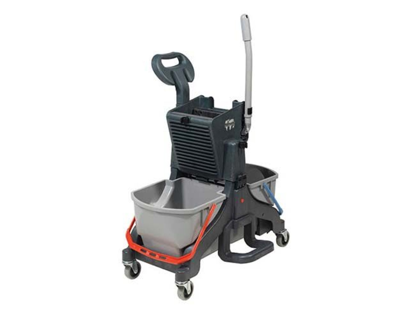 Numatic MidMop Plus – optimaler Doppelfahreimer für klassische Wischarbeiten in der Unterhaltsreinigung Durch die Position der Universalpresse in der Mitte werden beide Eimer bestens erreicht. Mittels Click-Systems wird die Presse mit dem Chassis verbunden. Treppenstufen oder Absätze können dank des Komfortgriffs einfach und schnell überwunden werden. Eine praktische Ablage für den Moppklapphalter ist im Lieferumfang enthalten. Die robuste Universalpresse ermöglicht ein optimales Dosieren der Feuchtigkeit des eingesetzten Moppbezuges. Das korrosionsfreie Structofoam-Material des Wagens gewährleistet eine sehr lange Lebensdauer. Optional kann der MidMop durch einen schwenkbaren 5-Liter Eimer zur Oberflächenreinigung erweitert werden. Zubehör Handgriff für MidMop, graphit Mopp-Halterung für MidMop, graphit Stielhalter 22mm für MidMop Optionales Zubehör Halterung für Warnhinweisschild für MidMop, graphit Schwenkbarer 5-Liter Eimer, grau mit farbcodiertem Henkel (rot) Zubehör für den Numatic MidMop Plus bestellen wir gerne für Sie! Rufen Sie uns an oder senden Sie uns eine Nachricht! Technische Daten Moppeimer: 2 x 16 Liter Laufrollen: 4 x 75 mm Gerätemaße: 700 x 400 x 1.030 mm