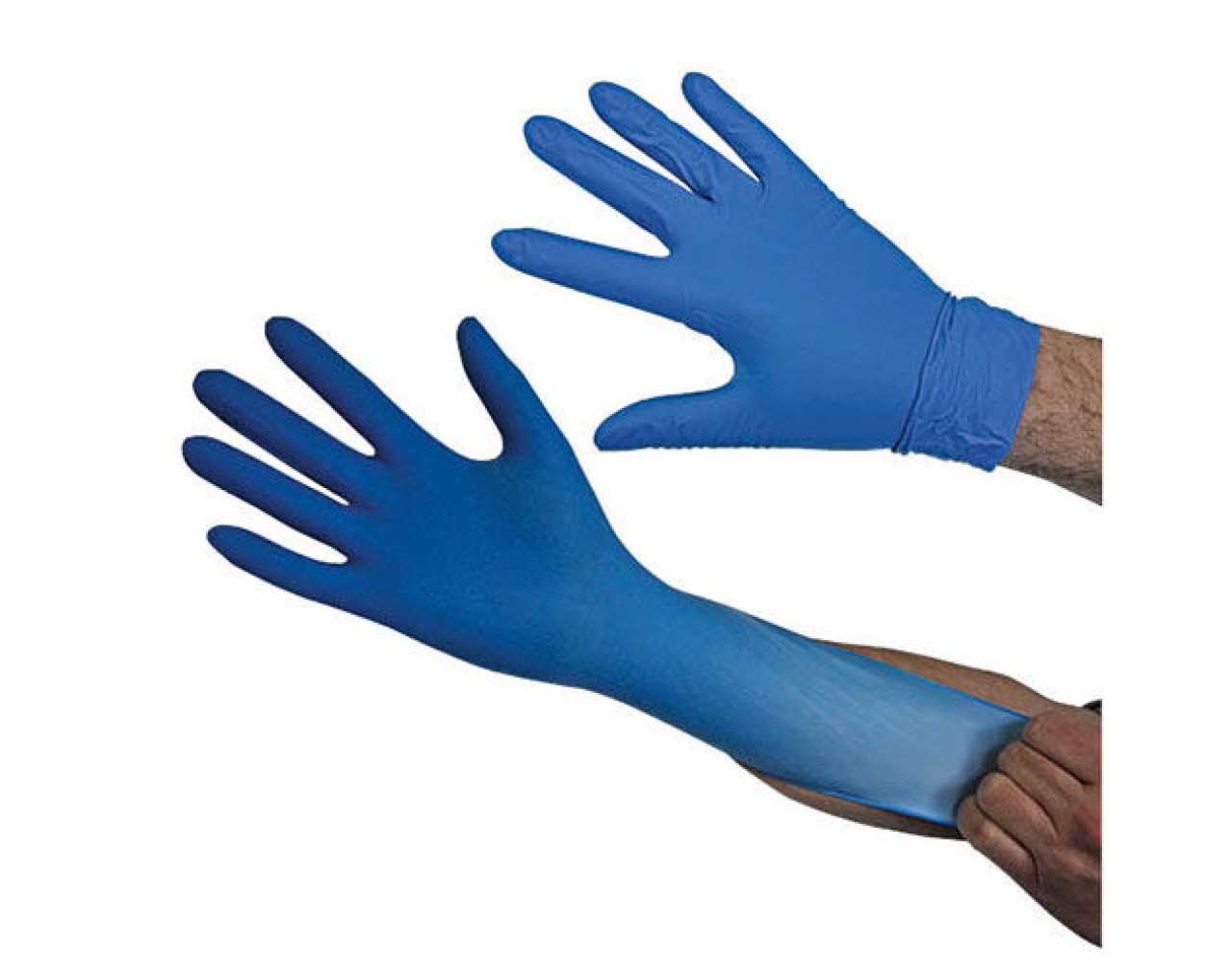 Einweg-Nitrilhandschuhe mit langem Schaft Die blauen Nitrilhandschuhe mit extra-langem Handschuhschaft schützen Hände und Unterarme zuverlässig vor Nässe sowie reizenden Flüssigkeiten oder Chemikalien. Sie eignen sich perfekt für den Einsatz in der professionellen Fenster- und Gebäudereinigung, da der lange Schaft verhindert, dass Nutzwasser in den Handschuh gelangt. Dank der mikrogerauten Oberfläche bleiben die Einmalhandschuhe auch in nassen Zustand griffig. Das reißfeste Nitril enthält keine Latexproteine, darum sind diese Handschuhe auch für Allergiker geeignet. Vorteile latexfrei angenehm zu tragen extra stabil und reißfest mikrogeraute Oberfläche unsteril und puderfrei extra-lang (ca. 300 mm); ideal zum Stülpen Normen und Zertifikate EN 455(1-4) EN ISO 374-1, 2, 4, 5 EN 420:2003+A1:2009 EN 16523-1:2015+A1:2018 AQL 1,5 CE-Kennzeichnung auf allen Verpackungsstufen, CE-Klassifizierung Die MaiMed nitirl LG PF Nitril-Einweghandschuhe sind in folgenden Größen erhältlich: S M L XL Produkteigenschaften Erhältliche Größen: S, M, L, XL Produkttyp: Untersuchungshandschuh Schutztyp: III Material: Nitril Länge: 300 mm Sterilität: nicht steril Textur: mikrogeraute Oberfläche Puderung: puderfrei Dichtheit AQL: 1,5 Form: universell Manschette: gerollt Farbe: blau lebensmittelecht: ja latexfrei: ja erfüllt Norm 374: ja erfüllt Norm 455: ja VE: 100 Stück / Box VE Karton: 10 Boxen VE Palette: 63 Kartons