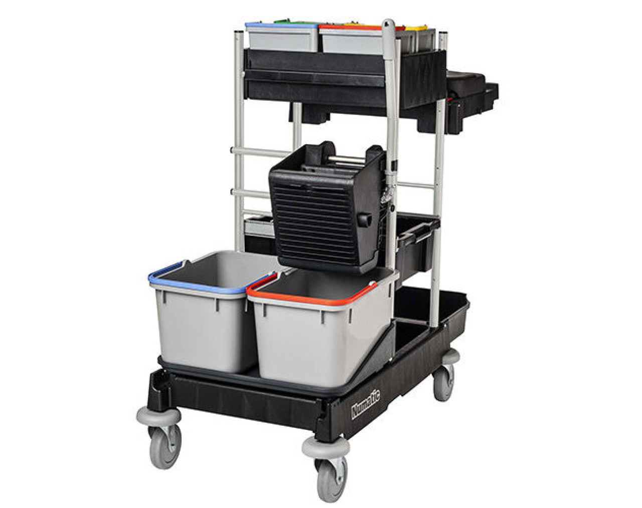 Numatic ProCar 7G – optimaler Reinigungswagen für die Unterhaltsreinigung großer Flächen und Objekte Diese Modelle sind mit einer robusten Universalpresse mit zwei großen Moppeimern, einer Abfalleinheit (2 x 70 / 1 x 120 Liter) und farbcodierten Eimern für die Oberflächenreinigung ausgestattet. Die großen Ablagefächer ermöglichen die Mitnahme von zahlreichen Versorgungsmaterialien, Reinigungsmitteln und Tüchern. Die Universalpresse ermöglicht ein Dosieren der Feuchtigkeit des eingesetzten Moppbezuges. Vorteile Universalabfalleinheit mit 2x 70 oder 1x 120-Liter optimales Dosieren der Feuchtigkeit des Moppbezugs möglich mit 4 x 5-Liter Oberflächeneimer und viel Stauraum stabile Structofoam-Bauweise und große 125 mm Laufrollen Universalpresse mit 2 Jahren Garantie Optionales Zubehör Deckel für schwenkbaren 4-Liter Eimer, transparent Verschliessbare TopBox, reflo Toolflex Halterung zur Befestigung an Numatic Ablageschale Ablage für Moppklapphalter, reflo Stielhalterung für MS1 Halterung für MS11 Wir bestellen für Sie selbstverständlich Zubehör für den Numatic ProCar 7G! Kontaktieren Sie uns telefonisch oder schreiben Sie uns eine Nachricht! Technische Daten Moppeimer: 2 x 17 Liter Abfalleinheit: 2 x 70 / 1 x 120 Liter Laufrollen: 4 x 125 mm Oberflächeneimer: 4 x 5 Liter Abmessungen: 1. 325 x 580 x 1.155 mm Ablagemöglichkeiten: 2 VE: 1