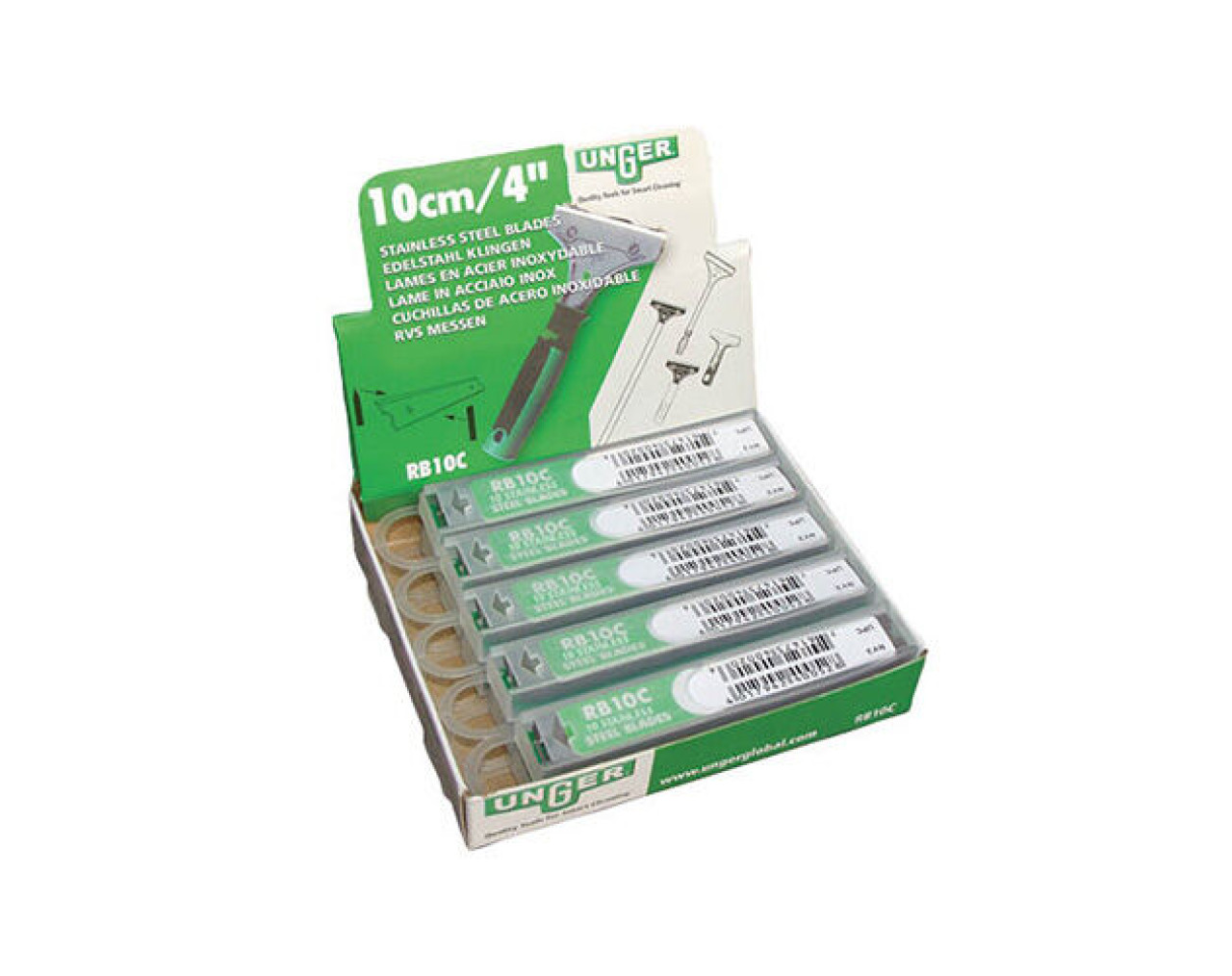 Doppelseitiger Ersatzklinge scharf/stumpf Vorteile scharfe Seite zum Entfernen von z. B. Kleber und Teppich stumpfe Seite gegen Mörtel und harten Schmutz passend für JSH000 und JSH250 kompatibel mit ErgoTec, Bodenschaber leicht und ErgoTec Langgriffschaber Die Edelstahl-Oberflächenklingen passen zu: ErgoTec Schaber ErgoTec Langgriffschaber Produkteigenschaften Material: Edelstahl Größe: 10 cm VE: 1 Box mit 10 Dispensern à 10 Klingen