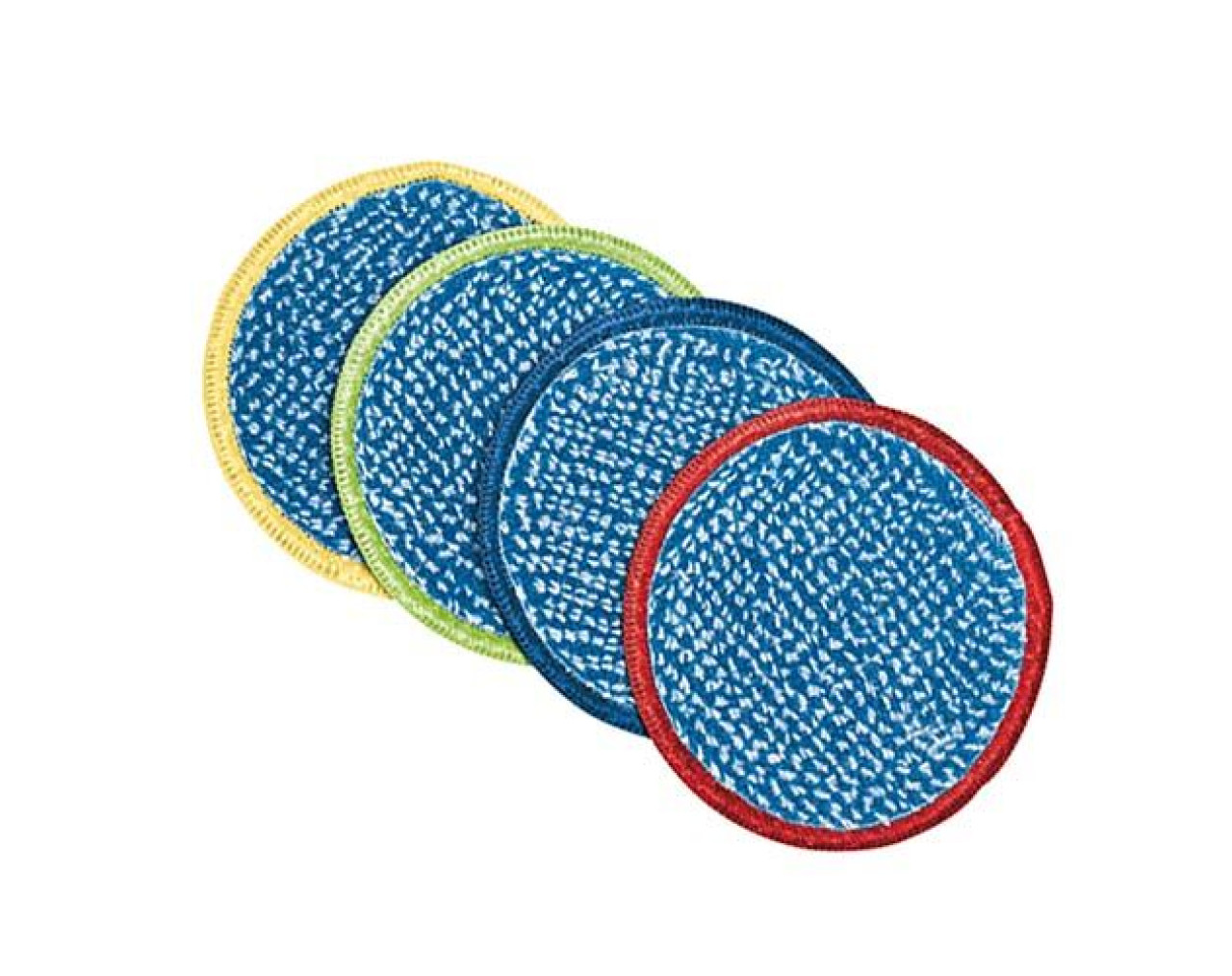 Runde Reinigungspads Runde Reinigungspads aus synthetischen und sehr robusten Fasern für die keimfreie Sanitärreinigung zum Schrubben. Abrassive Struktur für kratzfreies Schrubben auf Keramik, Porzellan und alle anderen Waschbecken, Bidets, Bäder und Urinale. Dieses Reinigungspad kann oft gewaschen werden und ist ein super Ersatz zu herkömmlichen Griffschwämmen. Vorteile weniger Platzbedarf auf Fahrwagen und im Waschprozess sehr gute Reinigungskraft durch Abrasion wiederverwendbar & robust sehr hygienisch Die Sani Rundpads von Mopptex sind in folgenden Farben erhältlich: blau gelb grün rot Produkteigenschaften Anwendungsbereiche: Sanitär, Waschbecken, Urinal, WC-Schüssel, Bidet usw. Waschbar: bis 90° Farbe: blau, grün, gelb, rot VE Karton: 200 Stk