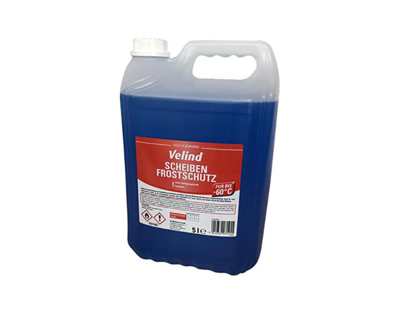 Scheiben Frostschutz Konzentrat, 5 Liter Kanister bis zu -60°C Vorteile Konzentrat verhindert das Einfrieren von Scheibenwaschanlagen und Düsen - pur bis zu -60°C sorgt für eine streifenfreie Sicht unschädlich für Lack, Chrom und Gummi durch die blaue Färbung lässt sich der Füllstand der Scheibenwaschanlage leicht ablesen hohe Reinigungskraft mit Beduftung Konzentration -30°C -20°C -10°C -8°C Scheibenfrostschutz: 3 2 1 1 Wasser: 1 1 2 3 Detergenzienverordnung: ALCOHOL; AQUA; GLYCOL; DENATONIUM BENZOATE; ISOPROPYL ALCOHOL; MEK; SODIUM COCETH-30 SULFATE; PARFUM; D-LIMONENE; COLOURANT Produkteigenschaften Gebindegrößen: 5 Liter Kanister Aggregatzustand: flüssig Geruch: charakteristisch Farbe: blau pH-Wert: 7 Frostsicher bis: - 60 °C VE: 2 Stk VE Palette: 144 Stk Pflichthinweise H226 Flüssigkeit und Dampf entzündbar | H319 Verursacht schwere Augenreizung P101 Ist ärztlicher Rat erforderlich, Verpackung oder Kennzeichnungsetikett bereithalten | P102 Darf nicht in die Hände von Kindern gelangen | P210 Von Hitze, heißen Oberflächen, Funken, offenen Flammen sowie anderen Zündquellen fernhalten. Nicht rauchen | P403+P235 An einem gut belüfteten Ort aufbewahren. Kühl halten | P501 Bei sachgemäßer Verwendung und unter normalen Bedingungen nicht erforderlich .