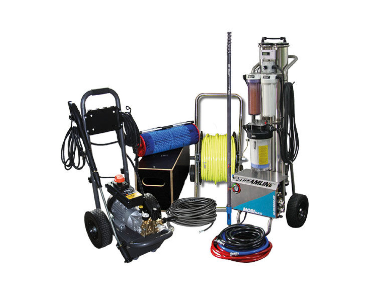 Jeikner Solarreinigungs Profi-Set Für jeden Einsatz vorbereitet: dieses Set bietet alles, was der Profi für die PV-Reinigung braucht! Die Sola-Tecs C800 Bürste kann bei Bedarf verkürzt oder verlängert werden. Damit sind Sie gut gerüstet für die meisten Einsätze und haben die Option auf zusätzliche Bürstenelemente. Mit dem 15 Meter Teleskopstangen-Set reinigen Sie bis hoch zum 5. Stock. Sie erreichen PV-Anlagen auf Dächern von Ein- und Mehrfamilienhäusern, Garagen, Werkshallen, öffentlichen Gebäuden oder Unterständen. Mit dabei ist die mobile RO-Einheit MOBI Maxi Double, die mit ihren zwei Membranen mehr als 10 Liter Reinwasser pro Minute produziert. Verbinden Sie die MOBI Maxi Double direkt mit dem Hochdruckreiniger und sparen Sie sich den Puffertank! Der Trolley für den Hochdruckreiniger ermöglicht mobiles schnelles Rüsten und Arbeiten. Das Set enthält zusätzlich drei Gleitbürsten, die auf die Teleskopstange gesteckt werden, um bei großen Reichweiten (und einer leicht durchgebogenen Stange) die darunter befindlichen PV-Module zu schützen. Das PROFI-SET beinhaltet: J05000056.775 – SolaTecs C800J0200868 – Spritzschutz C800J0200802 – SolaTecs Teleskoplanzen Set 15 mJFPTR2000-03HD – Mobi Maxi Double inkl. SchlauchsetJNW6-50 Hochdruckschlauch 50 m J0200828 – Gleitbürsten für TeleskoplanzenJHP-ETM150T – Hochdruckreiniger mit TrolleyJ0201052 – Transportkiste SolaTecs C