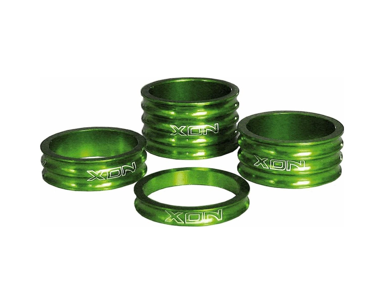Lenker Spacer Kit 28,6mm aus Aluminium Grün - 4 Teile XON, Größen 5mm, 10mm, 15mm, 20mm