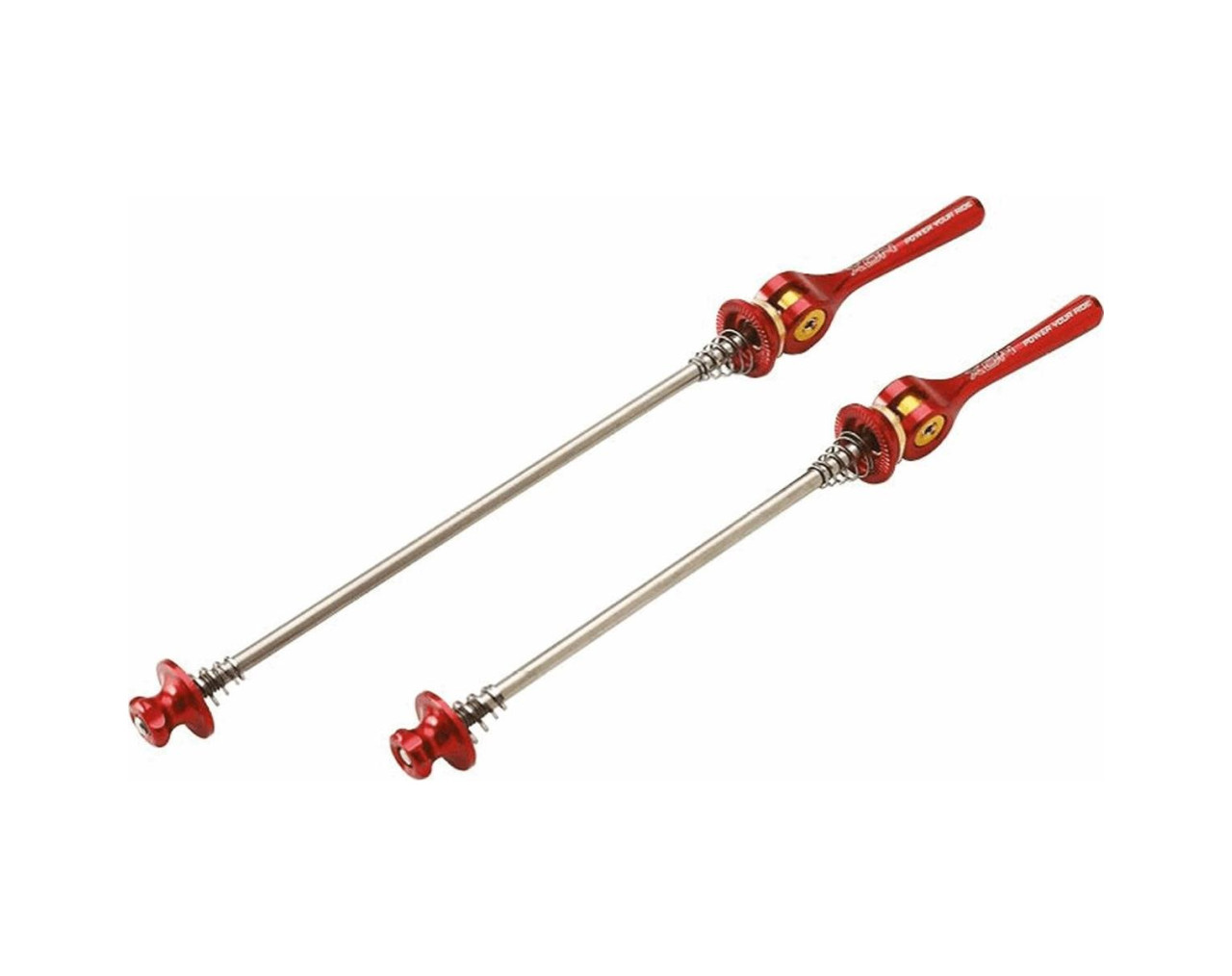 MTB Schnellspanner vorne und hinten aus Aluminium 7075 CNC rot, Titanachse, 59g