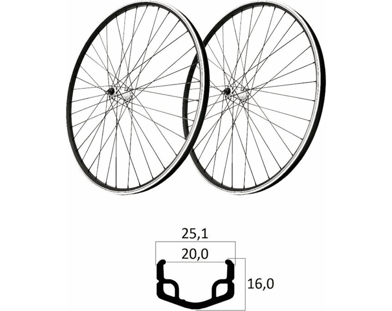 Paar 27,5' Aluminiumräder in Schwarz für V-Brake, 6/7V, 36 Speichen - MVTEK