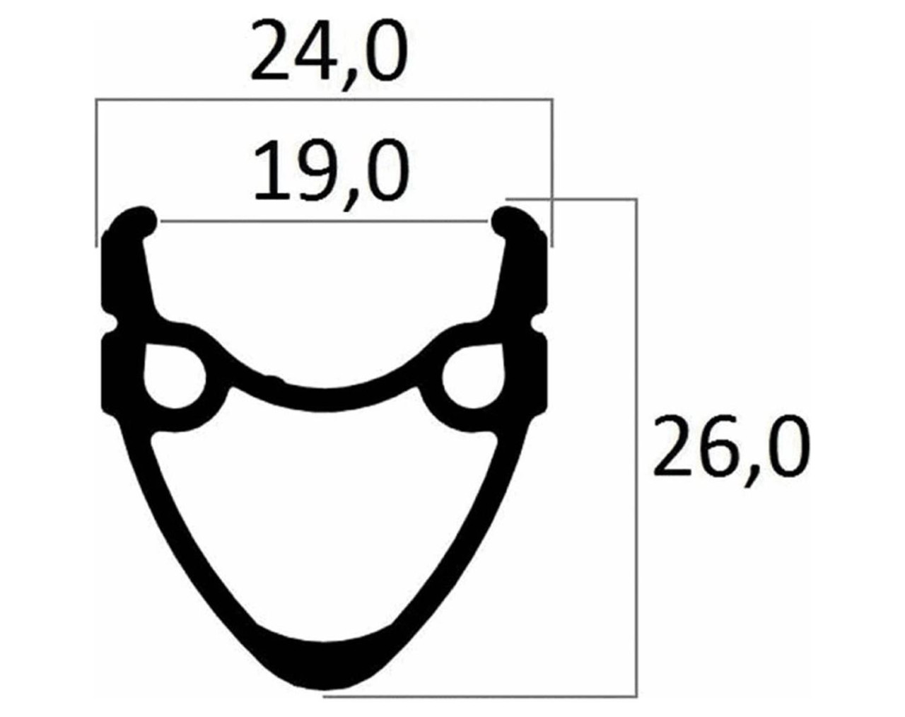 MTB 26' Aluminiumfelge Schwarz, Doppelkammer, 1,75 Breite, 36 Löcher