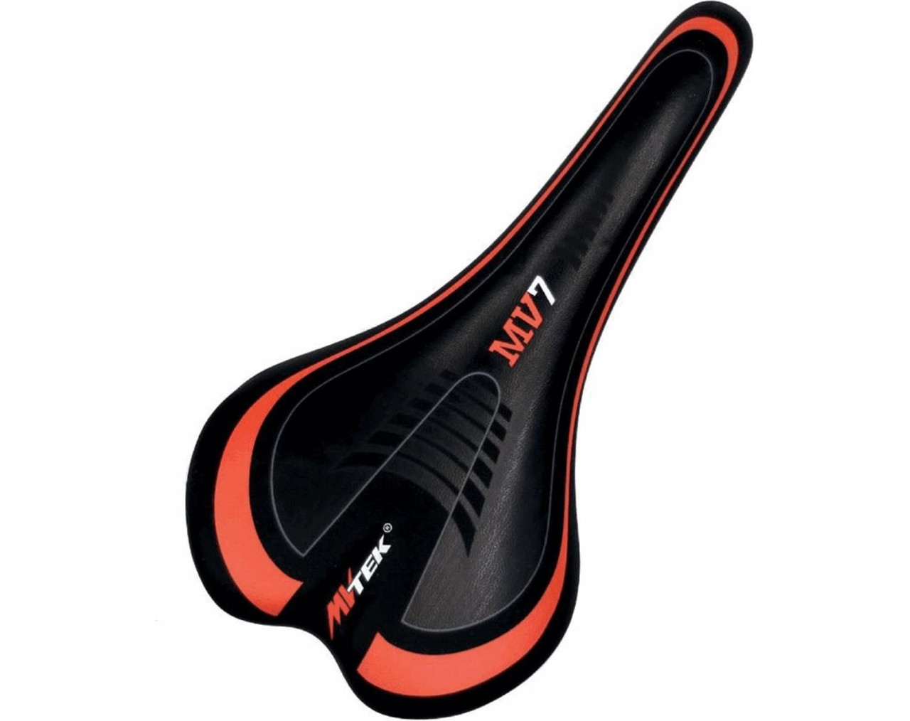 MV7 Sattel 275x145mm Schwarz/Orange aus Kunstleder mit Stahl-Schiene - MVTEK