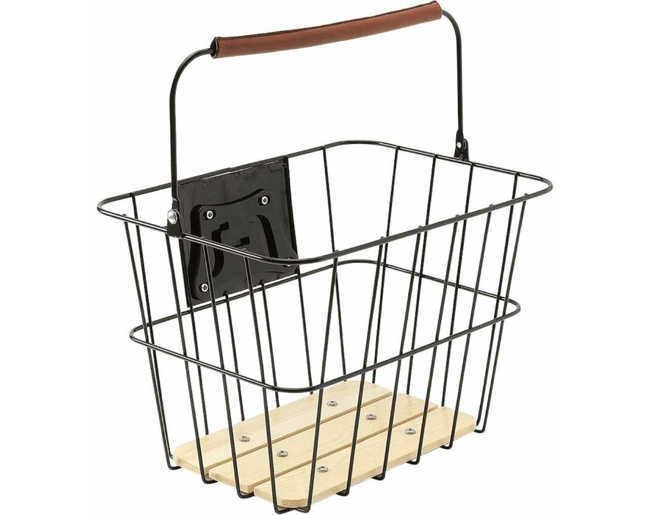 Vorderradkorb MVTEK 35x25x25cm Schwarz/Holz mit Schnellverschluss für Fahrrad