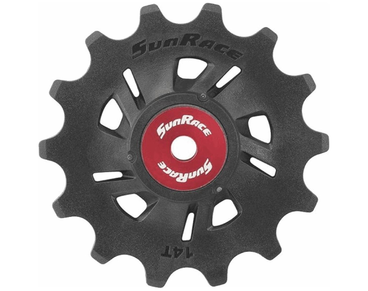 Universelle 14-Zahn Schaltrolle Schwarz/Rot Kompatibel mit Shimano, Campagnolo und SRAM - SUNRACE
