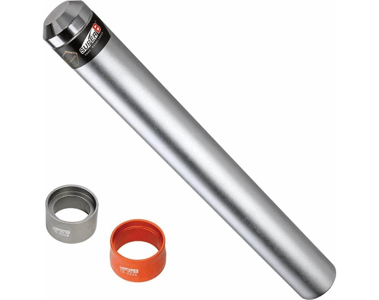 Krone Gabel Installationspresse mit Reduzierungen 1-1/5 und 1-1/4 - SuperBDie Krone Gabel Installationspresse ist ein unverzichtbares Werkzeug für die präzise und sichere Installation von Gabelkränzen. Dieses Werkzeug ist mit Reduzierungen ausgestattet, um sich an Größen von 1-1/5 und 1-1/4 anzupassen, was Vielseitigkeit und Kompatibilität mit verschiedenen Fahrradkonfigurationen gewährleistet. Kompatibilität: Reduzierungen für Größen 1-1/5 und 1-1/4 Präzision: Gewährleistet eine genaue Installation der Gabelkränze Zuverlässigkeit: Hergestellt von SuperB, ein Synonym für Qualität und LanglebigkeitIdeal für professionelle Mechaniker und Fahrradliebhaber, die Wartungs- und Installationsarbeiten mit höchster Präzision durchführen möchten.
