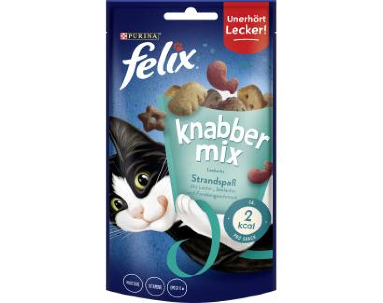 Strandspaß mit Lachs-, Seelachs- und Forellengeschmack. Teile liebevolle Momente voller Unfug mit deinem kleinen Racker und Felix KnabberMix - ein unwiderstehlich bunter Mix aus Leckerlis in vielen verschiedenen Formen, die köstlich duften und noch leckerer schmecken.