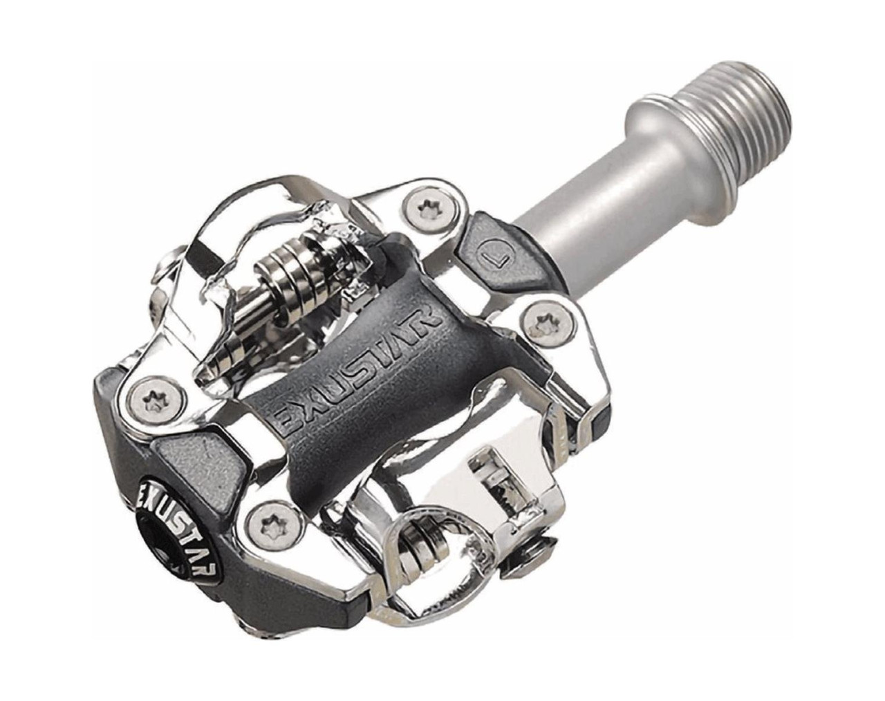 MTB Pedal E-PM213 aus schwarzem Aluminium - SPD-kompatibelEntdecken Sie das MTB Pedal E-PM213, das entwickelt wurde, um hervorragende Leistung und Langlebigkeit zu bieten. Hergestellt aus druckgegossenem Aluminium, ist dieses Pedal perfekt für Mountainbike-Enthusiasten, die Zuverlässigkeit und Leichtigkeit suchen. Abmessungen: 82x65mm Material: schwarzes druckgegossenes Aluminium Achse: C R • Mo Kompatibilität: SPD Gewicht: 324g pro Paar (inklusive SPD-Pedalschrauben)Das EXUSTA E-PM213 Pedal ist die ideale Wahl für alle, die ein qualitativ hochwertiges Produkt suchen, das ein sicheres und komfortables Fahrgefühl garantiert.