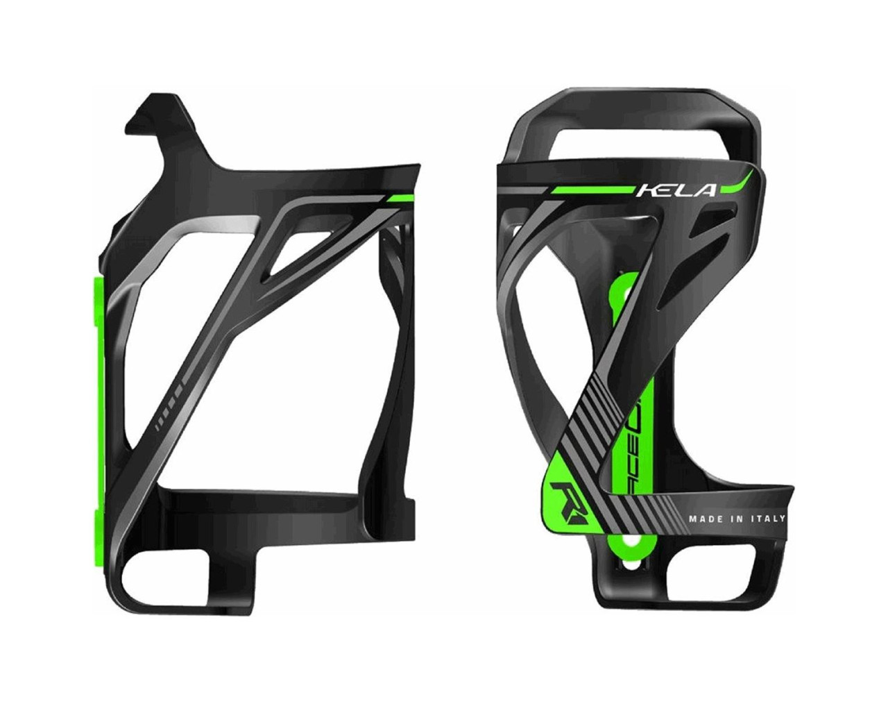 KELA Trinkflaschenhalter aus Polycarbonat Schwarz/Grün mit seitlichem Zugang 30g - RaceOne