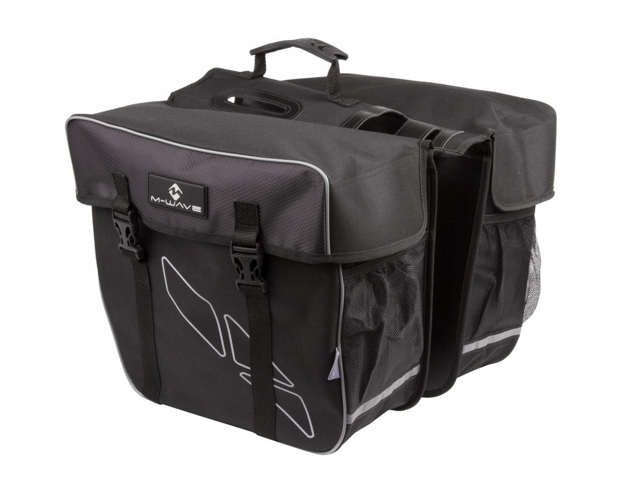 M-Wave Amsterdam Double 600D Gepäckträgertasche Schwarz/Grau mit Reflektoren - 50cm