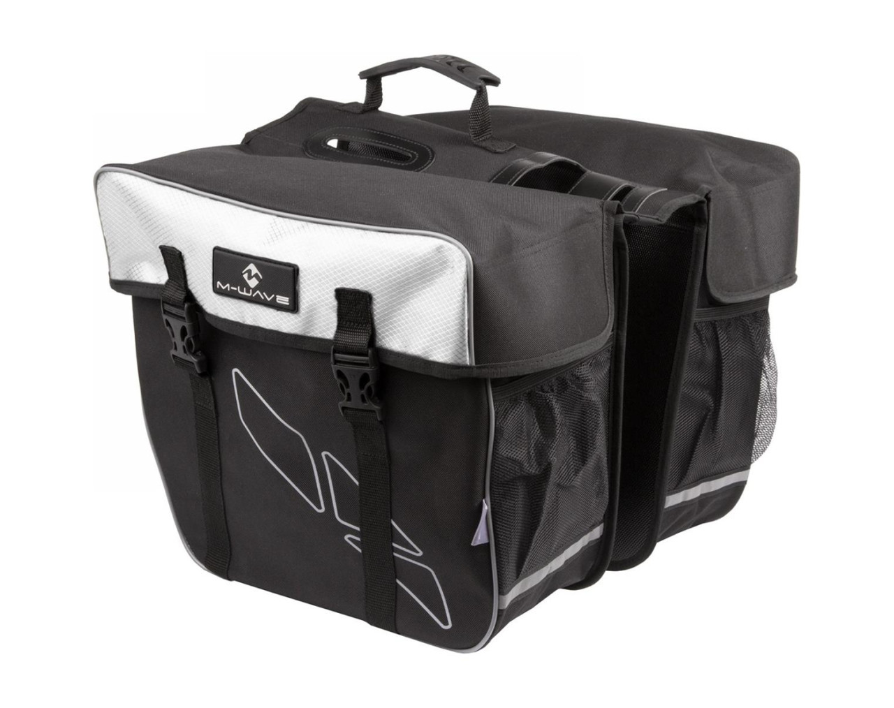 M-Wave Amsterdam Double Tasche aus Polyester Schwarz/Weiß 50cm mit Reflektoren