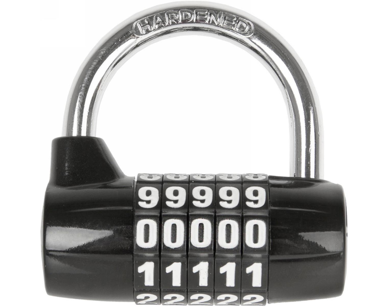M-WAVE Kombinationsschloss Schwarz mit 5 Scheiben - 64x60x27 mm