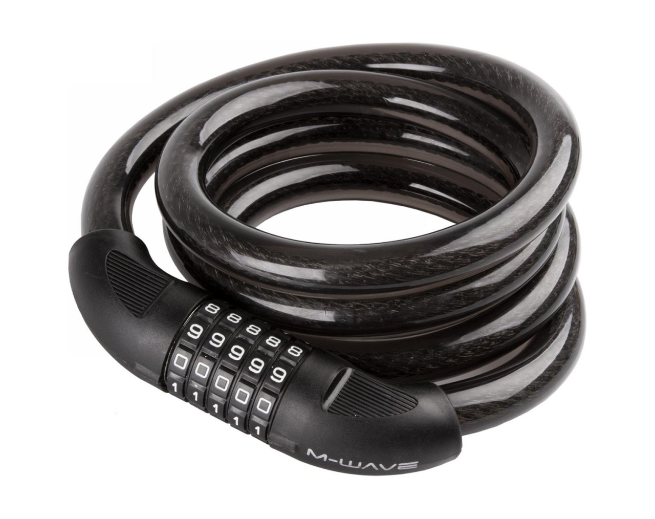 M-Wave DS 20.18 Kombinationsschloss mit Spiralkabel 1800x20 mm Schwarz für Fahrräder