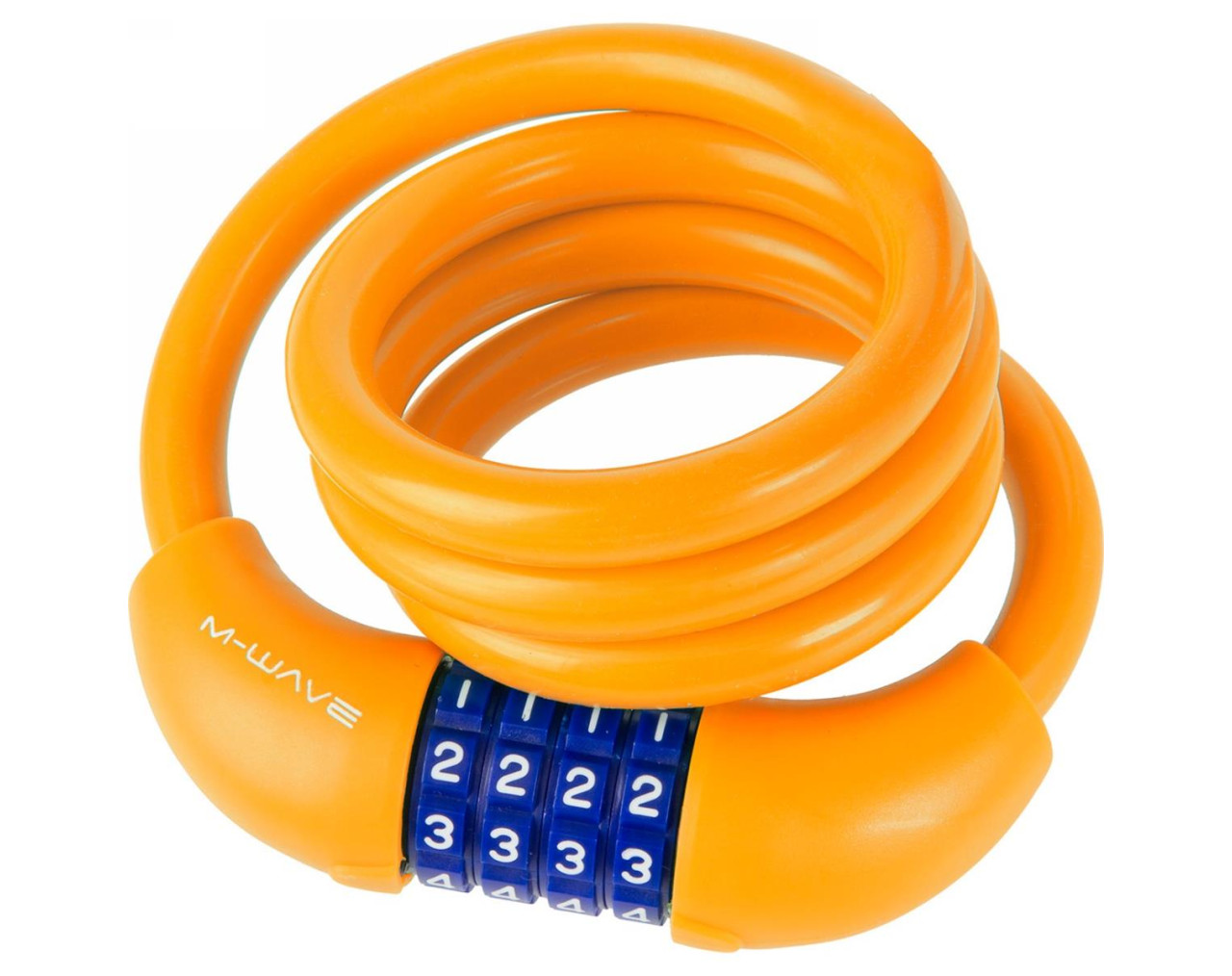 M-WAVE Silikonschloss mit Zahlenkombination, Spiralkabel 1000x12mm, orange