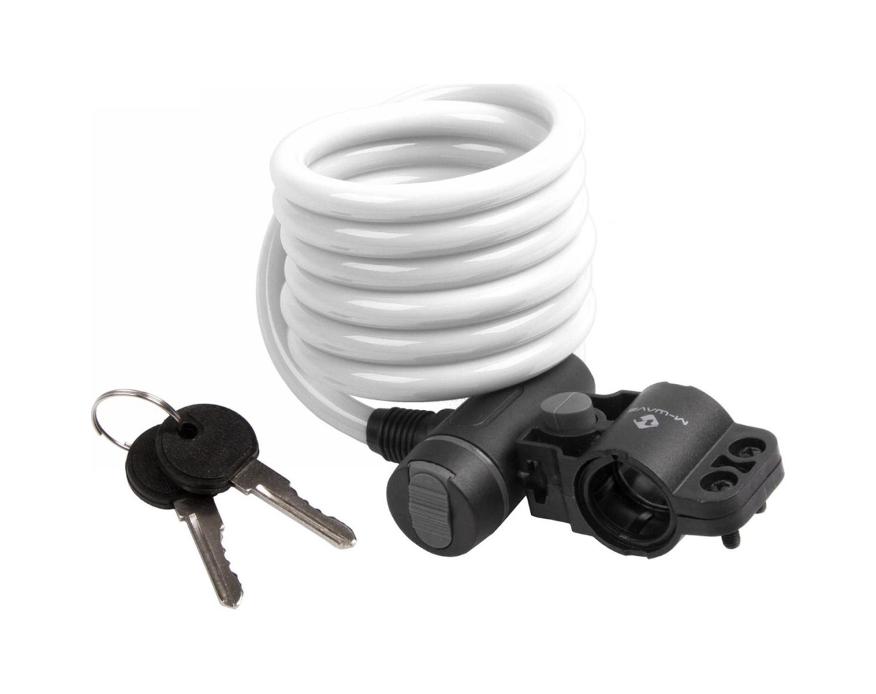 Weißes Spiralschloss 1800x10 mm mit Clip-Halterung und Staubschutzkappe