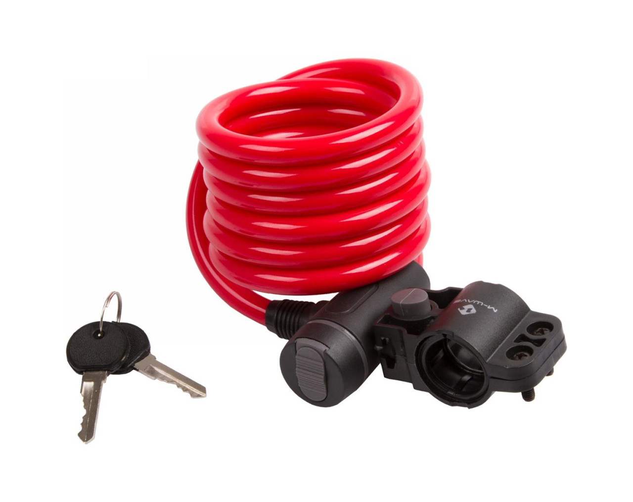 Rotes Spiralschloss 1800x10 mm mit Cliphalterung und Staubschutzkappe