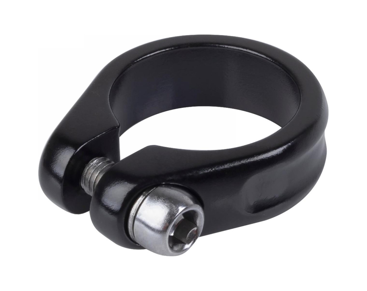 Sattelrohrklemme 28,6 mm aus schwarz eloxiertem Aluminium mit CrMo-Schraube