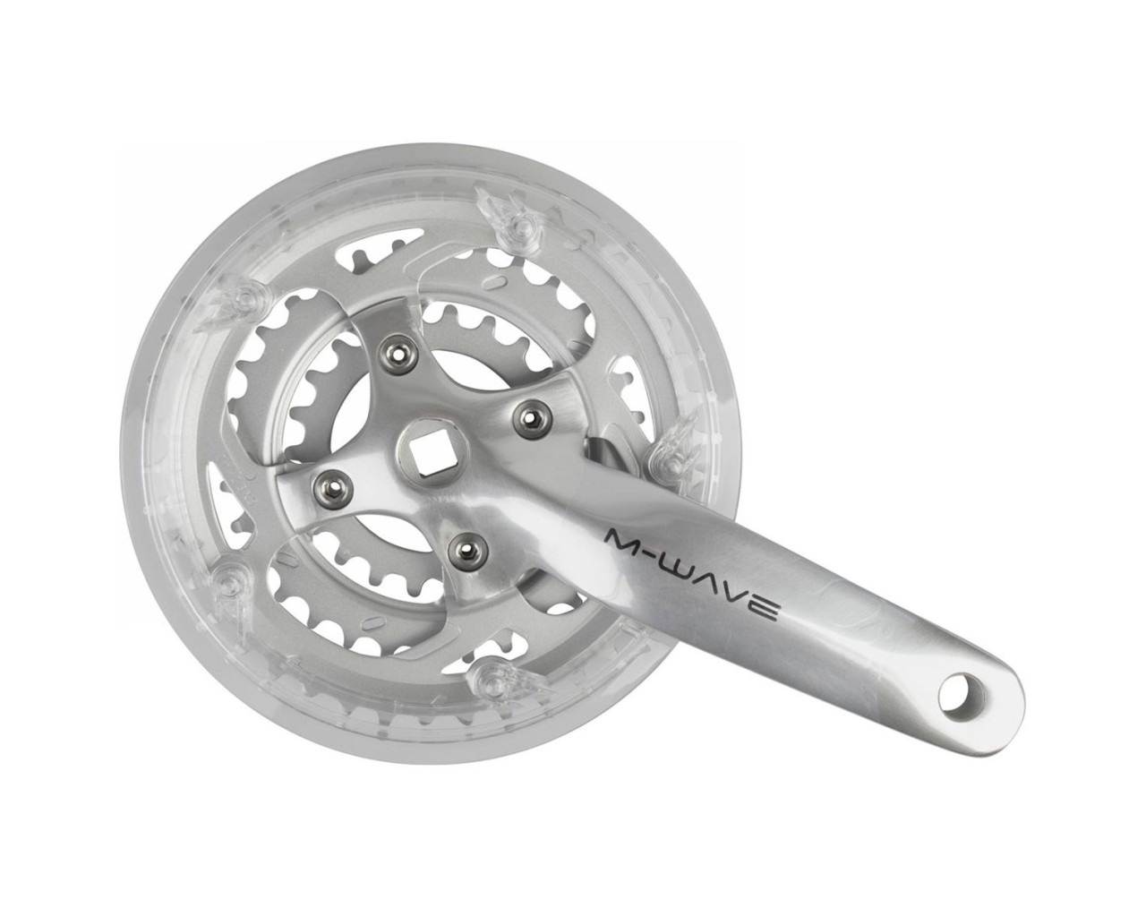 M-Wave Aluminiumkurbel 170mm für 8/7G mit Stahlzähnen 22/32/42T und KettenblattschutzDie M-Wave Kurbel ist für Fahrräder mit 8 oder 7 Gängen konzipiert und bietet eine perfekte Kombination aus Haltbarkeit und Leistung. Diese Kurbel ist mit einer 170 mm Aluminiumkurbel ausgestattet, die Leichtigkeit und Widerstandsfähigkeit gewährleistet. Wechselbare Zahnräder aus Stahl mit der Konfiguration 22/32/42T, ideal für verschiedene Fahrbedingungen. Bolzenkreis von 64 mm, kompatibel mit JIS-Standards, für eine sichere und stabile Montage. Entwickelt für quadratische Tretlager, was eine breite Kompatibilität mit verschiedenen Rahmen sichert. Fertigstellung in Silber, die deiner Fahrrad einen Hauch von Eleganz verleiht. Inklusive Kettenblattschutz, um die Kette zu schützen und die Sicherheit beim Fahren zu verbessern.Details: Die Kurbel wird mit einem Kettenblattschutz für zusätzlichen Schutz geliefert.Verpackung: Montageverpackung enthalten für eine einfache und schnelle Installation.