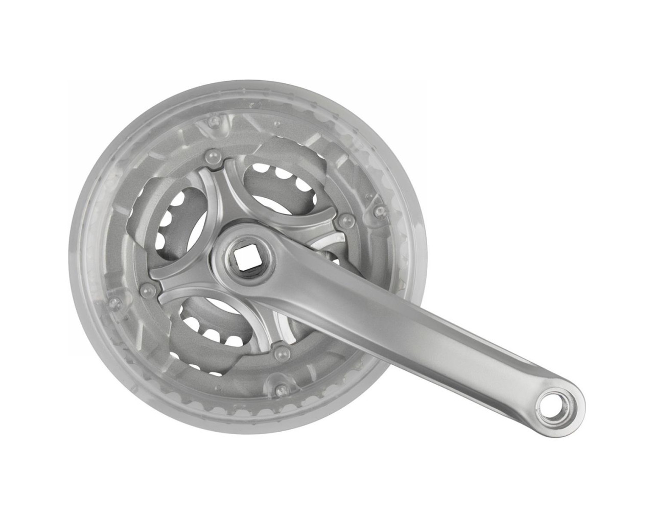 3-Gang Kurbel 170 mm aus Stahl mit Kettenschutz, JIS Silber, Zahnräder 24/34/42T