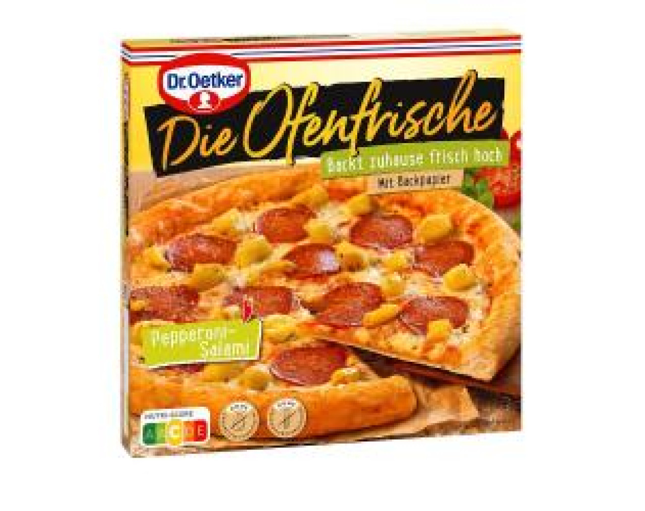 Die Ofenfrische - Pizza wie frisch gemacht. Die Ofenfrische Pepperoni-Salami backt zuhause frisch hoch und überzeugt mit einem knusprig-lockeren Boden und köstlichem Belag. Sie ist reichhaltig belegt mit fruchtiger Tomatensoße, kräftig-würziger Pepperoni-Salami und pikanten Peperonischoten.
