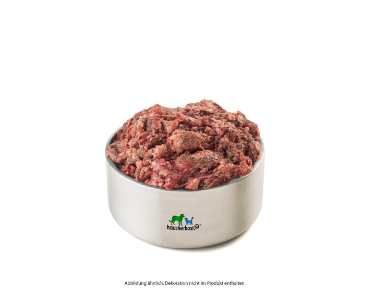 Senior Spezial, 500 g Mischung aus Rinderblättermagen, Rindermaulfleisch und Rinderschlundfleisch (mit Knorpeln und teilweise Knochen). Der Blättermagen ist ein Vormagen des Rindes und enthält ebenso wie der grüne Pansen eine Vielzahl an probiotischen Kulturen. Der Blättermagen ist magerer, zarter und kalorienärmer als der grüne Pansen. In Kombination mit dem Maul- und Schlundfleisch ergibt sich daraus eine bekömmliche Mischung. Geeignet für alle gesunden Rassen jeglichen Alters, besonders empfehlenswert für ältere Hunde.