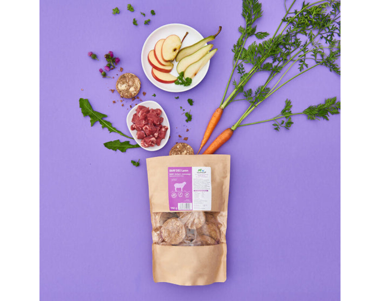 BARF2GO Komfort Plus Lamm Taler enthalten alle wichtigen Komponenten für eine artgerechte Versorgung des Hundes.