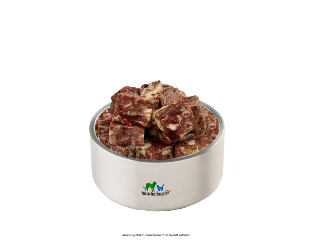Komplettes Huhn mit Innereien und Haut (ohne Därme, Kopf, Fell und Krallen). 100 % natürliches Verhältnis. Die enthaltene Karkasse (Knochen) dient als natürliche Kalziumquelle. Geeignet für alle gesunden ausgewachsenen Tiere.