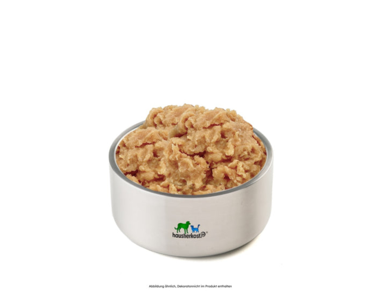 Hühnerfleisch ist ein relativ fettarmer Eiweißlieferant und eignet sich deshalb auch für viele Hunde & Katzen jeglichen Alters die zu Übergewicht neigen.