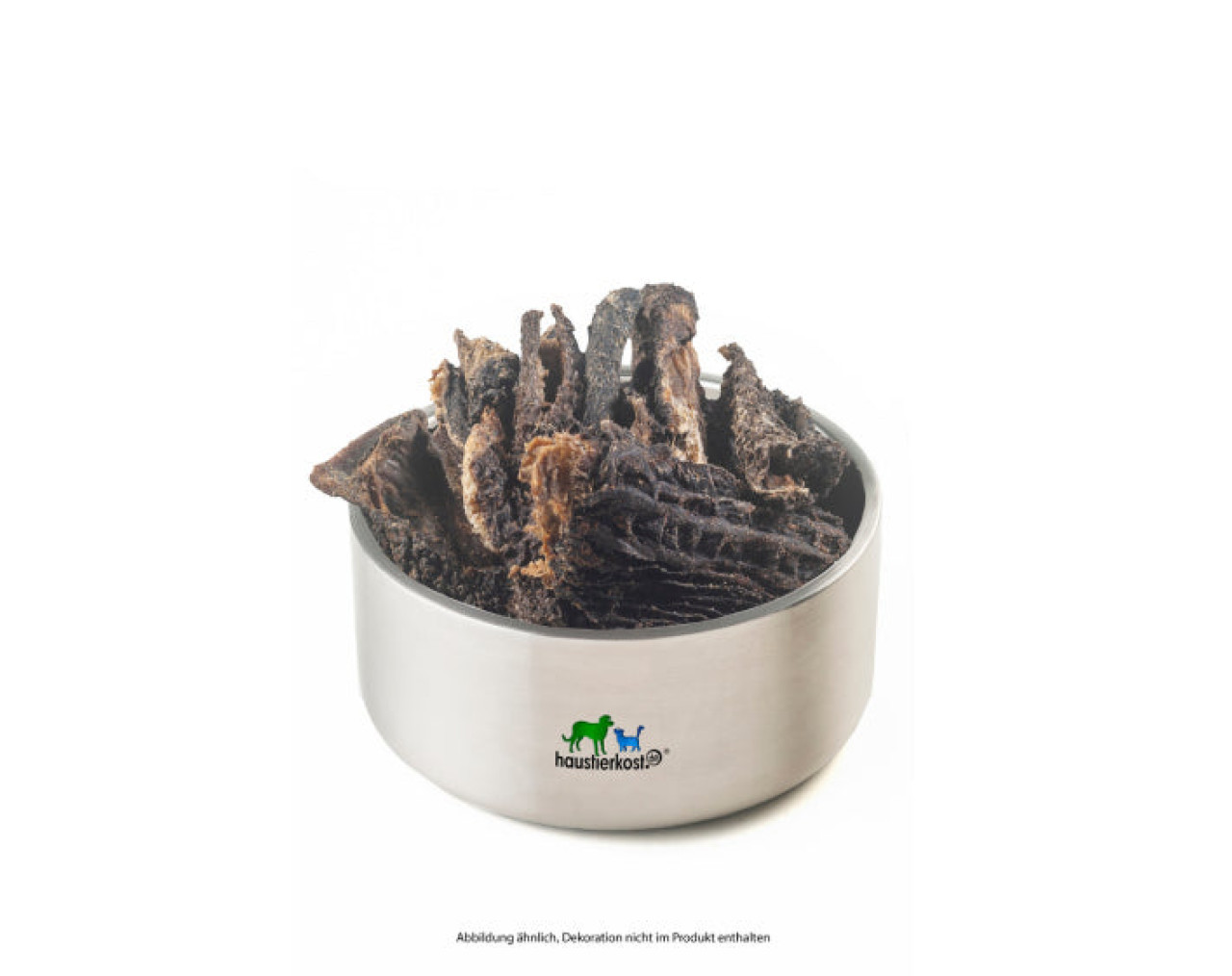 Rinderpansen getrocknet, 500 g Mit wertvollen Nährstoffen aus dem Rindermagen bietet dieser reichhaltige Knabberspaß Freude für Hunde jeder Größe. Die Stücke lassen sich leicht zerteilen und sind jeweils etwa 10–15 cm lang. Wir führen grundsätzlich keine aus China importierten Kauartikel in unserem Sortiment.