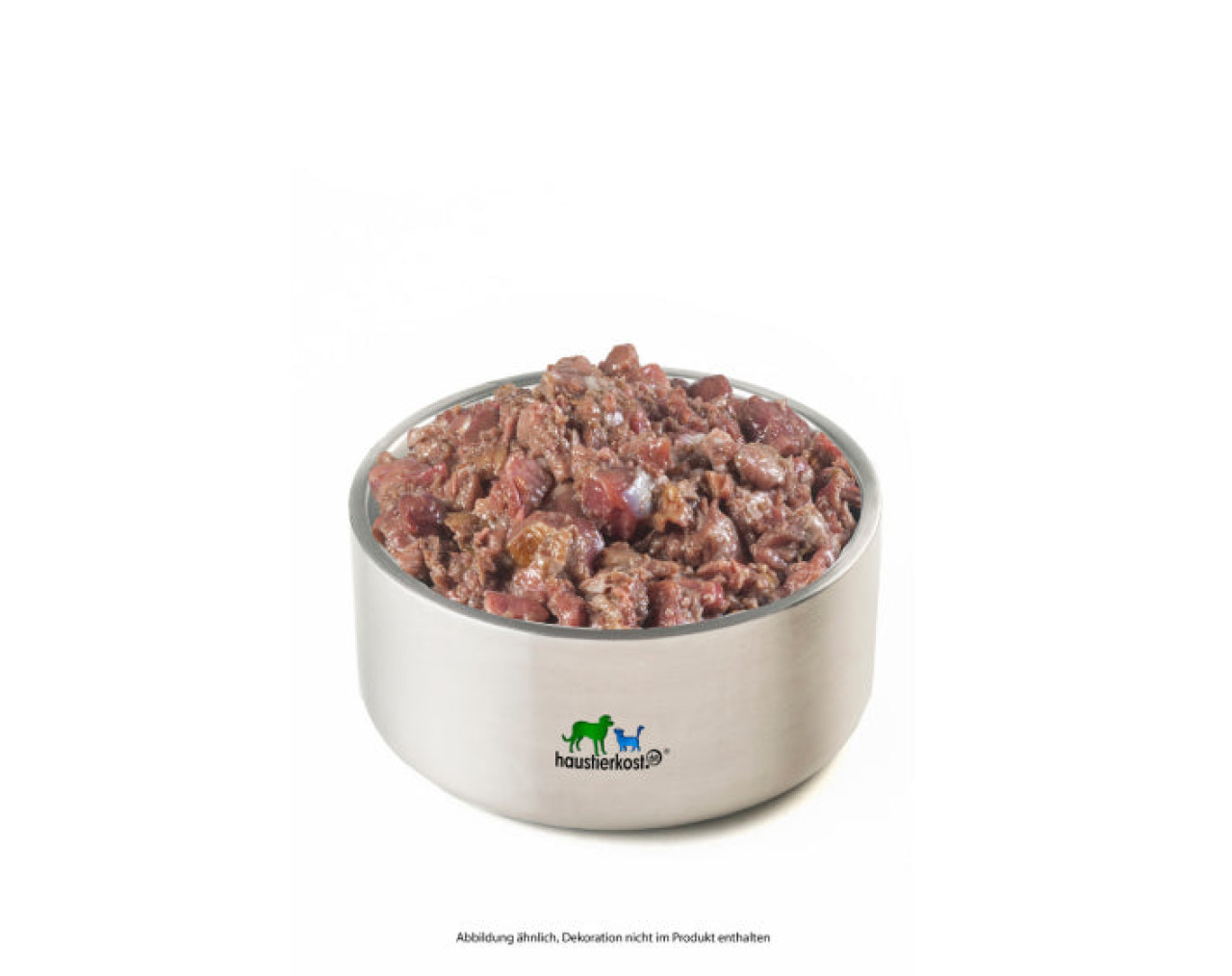 Hähnchen-Mix, 1 kg Der Hähnchen-Mix besteht aus Hähnchenfleisch, -herz, -magen, -leber (Ein Feinanteil kann im Produkt enthalten sein, ebenso Mageninhalt z.B. Heureste). Geeignet für alle gesunden Rassen jeglichen Alters, insbesondere auch für viele sensible und allergische Hunde und Katzen, z.B. im Zusammenhang mit einer Ausschlussdiät! (Nach Rücksprache mit dem Tierarzt oder Tierheilpraktiker.)