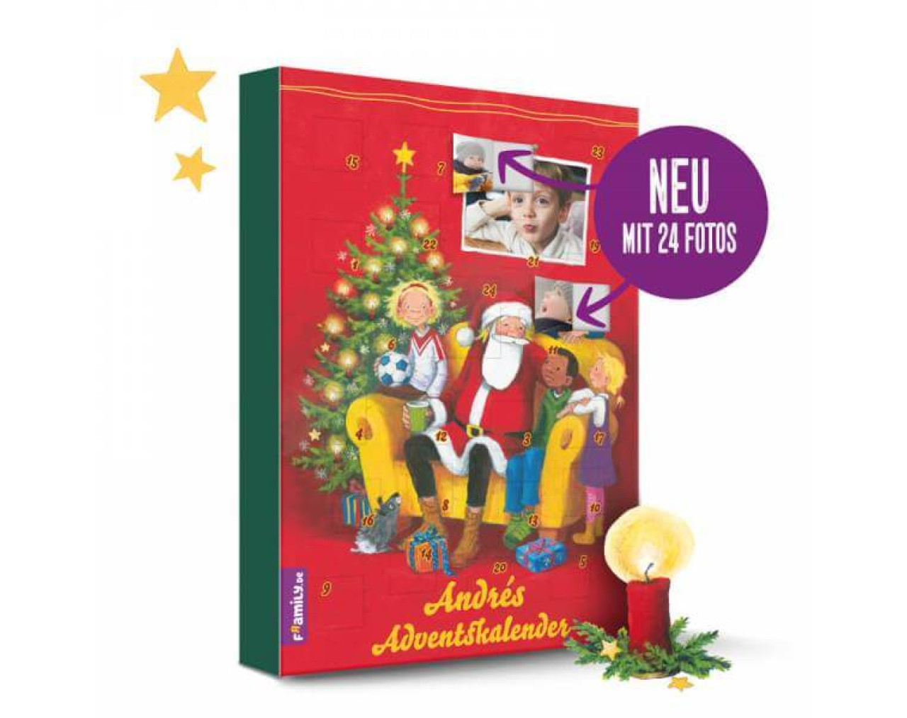 Adventskalender Weihnachten mit Weihnachtsmann Der Weihnachtsmann sitzt schon bereit – auf deinem ganz persönlichen Weihnachtskalender mit einem Weihnachtsmann auf gelbem Sessel, Kindern, die ihm ihre Wünsche zu Weihnachten verraten und einem bunt geschmückten Weihnachtsbaum. Mit dem personalisierten „Adventskalender Weihnachtsmotiv“ von Framily freust du dich Türchen für Türchen über 24 tolle Überraschungen . Weil es dein ganz besonderer Adventskalender zu Weihnachten ist, kannst du ihn auf dich anpassen : Sag uns ob du ein Mädchen oder ein Junge bist? Lade ein hübsches Foto von dir hoch. zudem hast du die Möglichkeit für jedes Türchen des Kalenders ein Foto hochzuladen. Im Handumdrehen entsteht so ein ganz persönlicher Jahresrückblick für dein Kind – entscheide selbst, ob Familienmitglieder oder nur dein Kind zu sehen sein darf. Auf der Rückseite ist Platz für eine kurz...