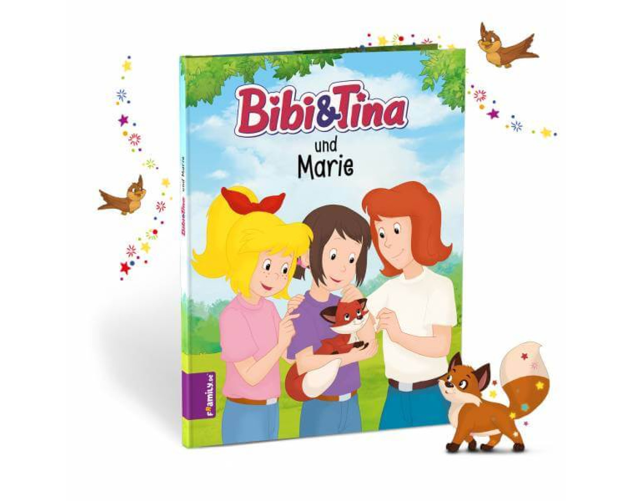 Mit Bibi und Tina rettest du die Fuchsfamilie – jetzt Buch personalisieren Bibi Blocksberg und Tina Martin erwarten dich. Gemeinsam verbringt ihr wunderschöne Tage auf dem Reiterhof. In unserem personalisierten Kinderbuch von Framily können Fans der Serie selbst in die Welt rund um den Martinshof eintauchen! Bibi und Tina holen dein Kind mit der Kutsche vom Bahnhof ab, zeigen ihm den Hof und erleben schon beim ersten gemeinsamen Ausritt ein richtiges Abenteuer. Ihr findet einen Fuchsbau mit drei süßen Fuchsjungen. Könnt ihr den niedlichen Welpen helfen, ihre Mutter zu finden? Sichere dir dein personalisiertes Pferdebuch mit Bibi und Tina Damit es dein besonderes Abenteuer mit Bibi & Tina wird, beantworte uns folgende Fragen: Reist du mit einem Koffer oder Rucksack an? Wie sehen deine Eltern aus? Wie alt bist du? Wie heißt dein Lieblingspony? Sattel dein Pferd und buche...