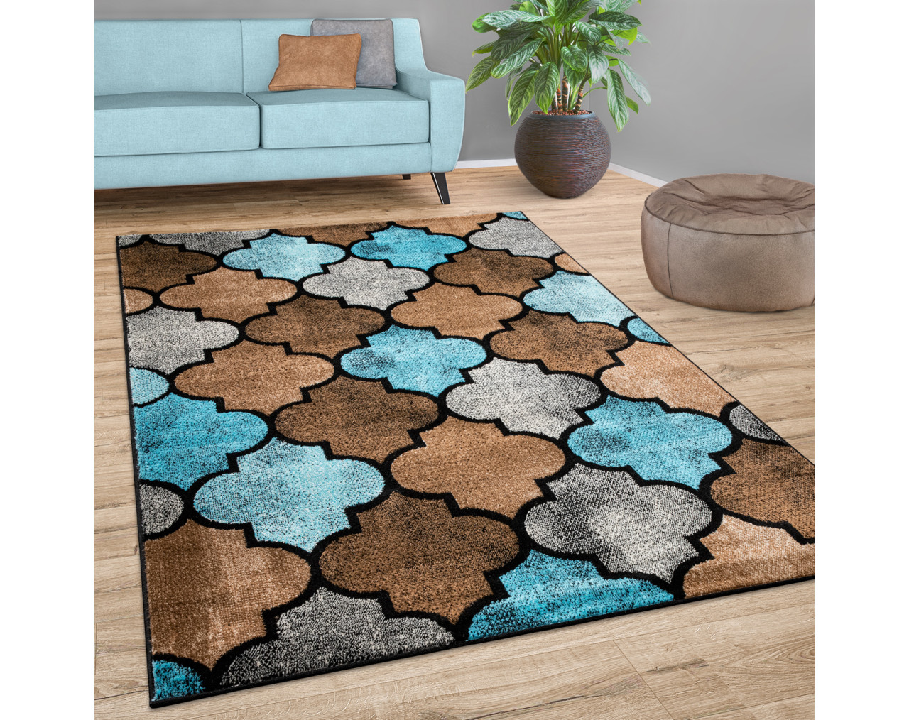 Bring ein wenig marokkanisches Flair in dein Zuhause mit diesem atemberaubenden Teppich. Seine lebendigen Farben und das wellenartige Muster bringen Schwung in jeden Raum und sorgen für eine einladende Atmosphäre. Ob im Wohnzimmer, Schlafzimmer oder Flur, dieser Teppich wird überall zum Hingucker und verleiht deinem Zuhause ein modernes und stilvolles Ambiente. Du hast die Wahl zwischen verschiedenen Farbtönen, von schlichtem Beige bis hin zu kräftigem Braun mit blauen Akzenten. Dieser Teppich ist nicht nur ein echter Blickfang, sondern auch unglaublich praktisch. Er ist pflegeleicht und robust, so dass er auch in stark frequentierten Bereichen problemlos eingesetzt werden kann. Du musst dir also keine Sorgen um Flecken oder Abnutzung machen. Genieße den Komfort und die Schönheit dieses Teppichs und lass dich von seinem Charme verzaubern.