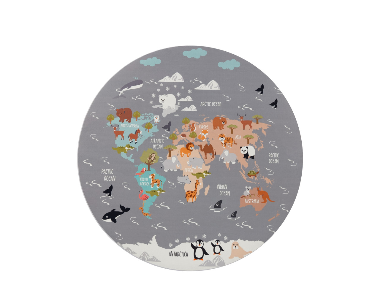 Lass deine Kleinen auf eine Weltreise gehen, ohne ihr Zimmer zu verlassen. Mit diesen Teppichen können sie sich auf eine Eisscholle mit niedlichen Eisbärenbabys setzen oder mit einer Kamelkarawane durch die Wüste ziehen. Ihre Fantasie kann fliegen und sie können dabei so viel lernen. Der dezente Grauton bringt die farbenfrohen Kontinente, die herrlich gezeichneten Tiere und weitere Details zur Geltung. Diese Teppiche sind mehr als nur schicke Accessoires, sie sind Spielplätze für die Fantasie. Sie sind robust und leicht zu reinigen, sodass du dich entspannen und deine Kinder einfach Kinder sein lassen kannst. Mit diesen Teppichen wird das Kinderzimmer zu einem Ort voller Abenteuer und Entdeckungen.