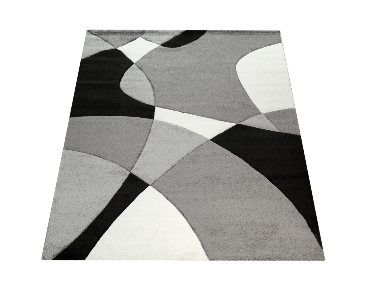 Verleih deinem Zuhause mit diesem Teppich einen Hauch von Modernität. Seine geometrischen Formen in Schwarz, Weiß und Grau sind ein echter Blickfang und sorgen für einen harmonischen Gesamteindruck. Dabei ist das edle Grau der Star, das durch das tiefe Schwarz und das strahlende Weiß gekonnt in Szene gesetzt wird. Das Muster spielt mit deinen Sinnen und erzeugt einen plastischen, dreidimensionalen Effekt. Aber dieser Teppich ist nicht nur ein Augenschmaus - er ist auch robust und pflegeleicht. Und das Beste: Er fühlt sich auch auf Fußbodenheizungen pudelwohl. Stell dir vor, wie dieser Teppich in einer minimalistischen Einrichtung zur Geltung kommt. Kombiniere ihn mit Accessoires aus Stahl oder Beton und wähl eine Farbe, die das Design unterstreicht. So kreierst du eine lebendige, moderne Atmosphäre, die dein Zuhause zum Strahlen bringt.