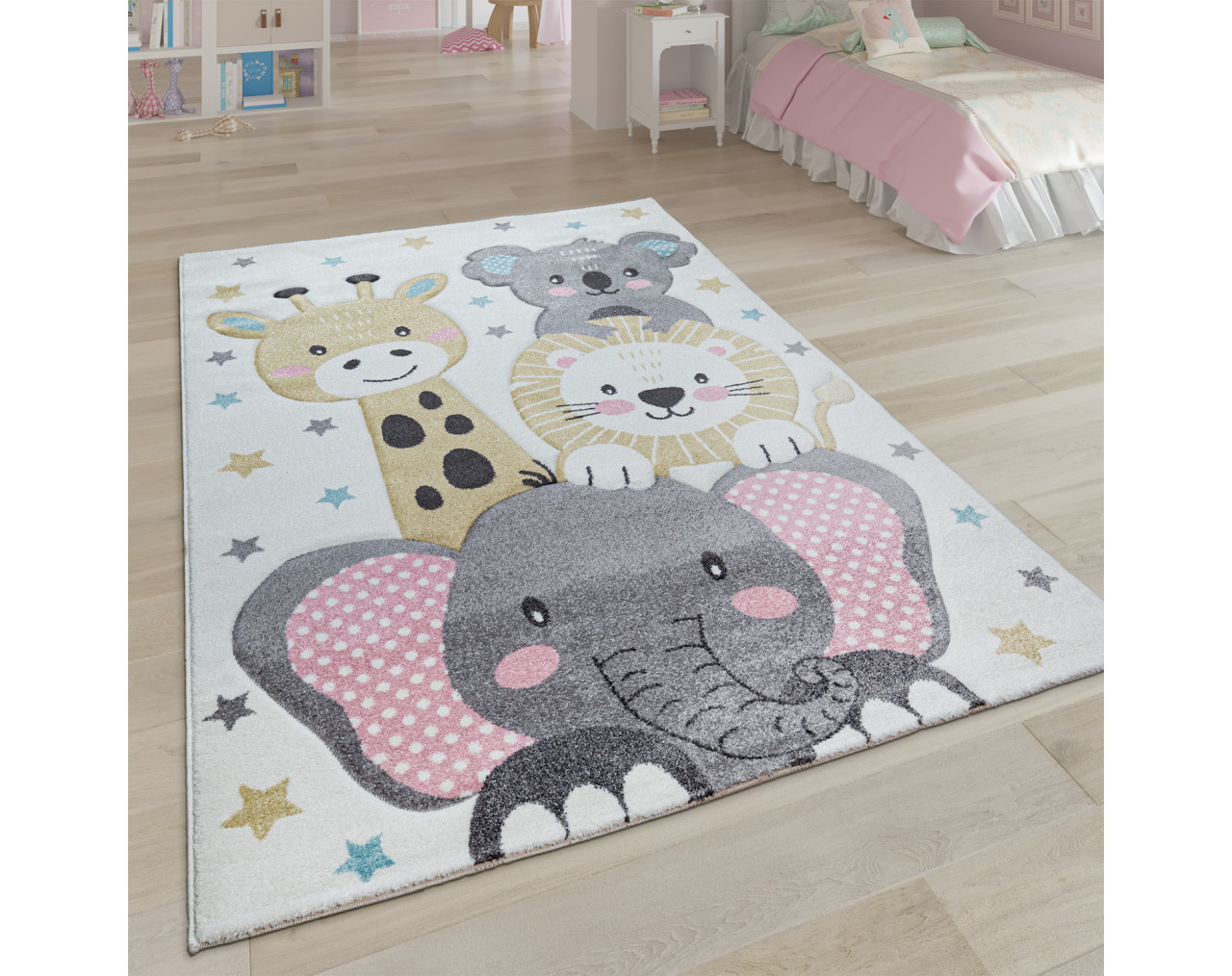 Einfach tierisch! Mit diesem charmanten Kurzflor-Teppich wird das Kinderzimmer zum wilden Abenteuerspielplatz. Die putzigen Tiermotive laden zum Spielen, Toben und Entdecken ein. Und wenn die kleine Rasselbande erschöpft ist, wird der weiche Teppich zur perfekten Kuschelzone. Die leuchtenden Farben und das liebevolle Design fügen sich nahtlos in jedes Kinderzimmer ein. Dabei ist unser Teppich nicht nur ein Hingucker, sondern auch ein echtes Kraftpaket. Denn wir wissen, was ein guter Spielkamerad aushalten muss. So ist der Teppich nicht nur für den Kinderzimmeralltag bestens gerüstet, sondern macht auch in anderen stark beanspruchten Räumen eine gute Figur. Und das Beste: Der Teppich ist pflegeleicht und unkompliziert in der Reinigung. So kannst du dich entspannt zurücklehnen und den kleinen Abenteurern beim Spielen zusehen.