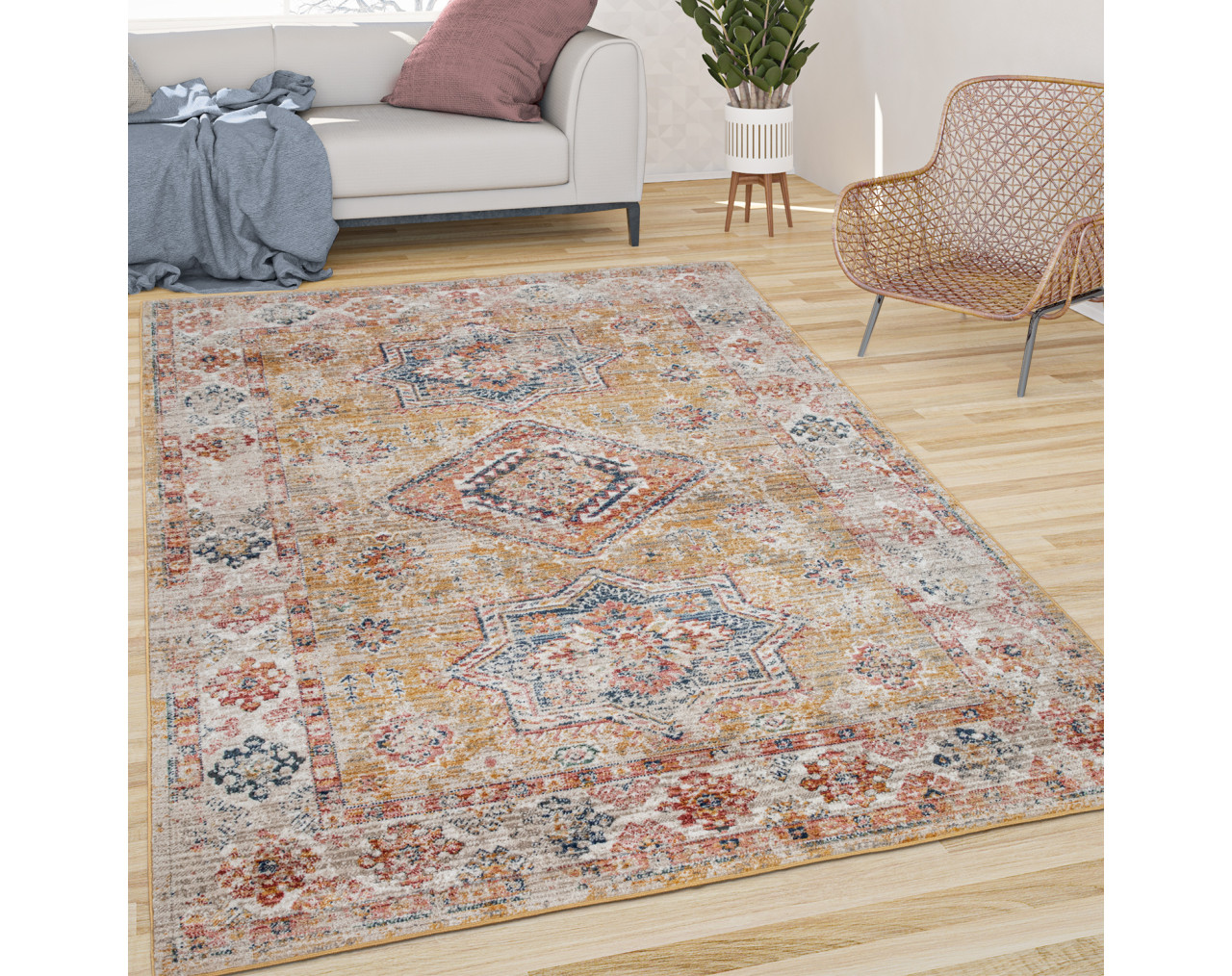 Lass dich von der Magie des Orients verzaubern, direkt in deinem Wohnzimmer oder Flur. Mit diesen Teppichen ist das kinderleicht. Ihre filigranen, floralen Ornamente, typisch für den orientalischen Stil, schaffen im Nu ein behagliches und traumhaftes Ambiente wie aus Tausendundeiner Nacht. In warmen Farben gehalten, werten sie deinen Einrichtungsstil auf, ohne ihn zu überladen. Ein besonderes Highlight ist der markante Used-Look, der jeden Teppich zu einem Unikat macht. Wir sorgen dafür, dass deine Orient-Erfahrung nicht nur ein kurzes Erlebnis, sondern ein dauerhaftes Wohlgefühl ist. Die Teppiche sind daher besonders langlebig und robust, perfekt für alle Bereiche deines Zuhauses, selbst die am meisten genutzten. Deine Gesundheit ist uns wichtig, daher verwenden wir nur geprüfte Materialien. Tauche ein in die Welt des Orients mit unseren einzigartigen Teppichen.